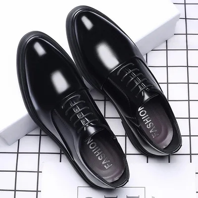 Mens Fashionable Casual Leather Shoes British Pointed Business Formal Leather Trendy Wear-resistant and Breathable Wedding Shoes