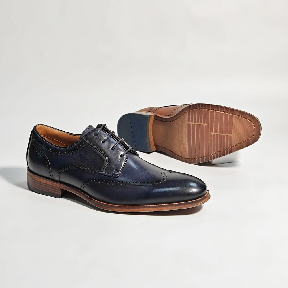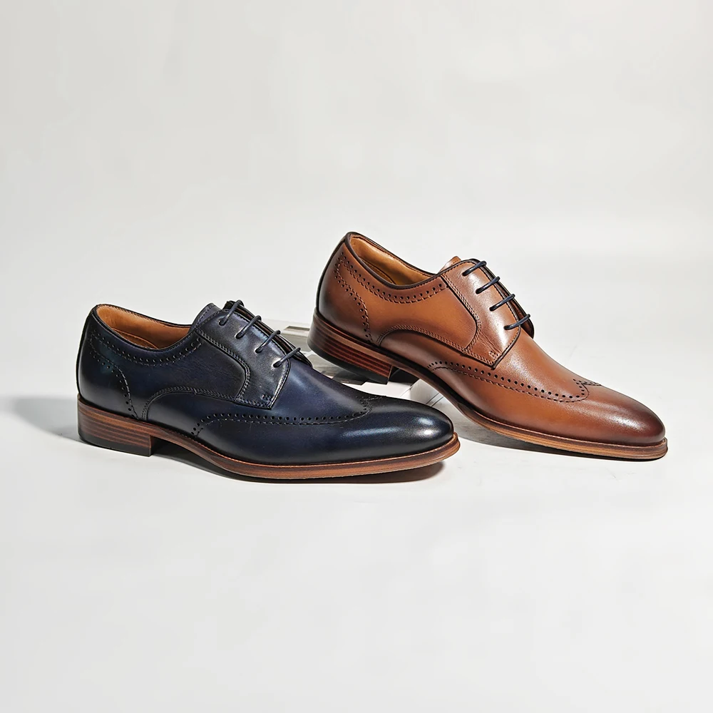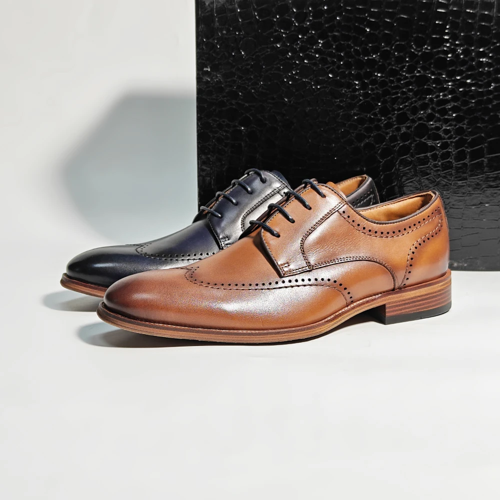 Factory Wholesale Men's Leather Shoes Designer OEM Formal Rubber Sole Oxfords Trendy Formal Shoes Lace-up Dress Shoes Men