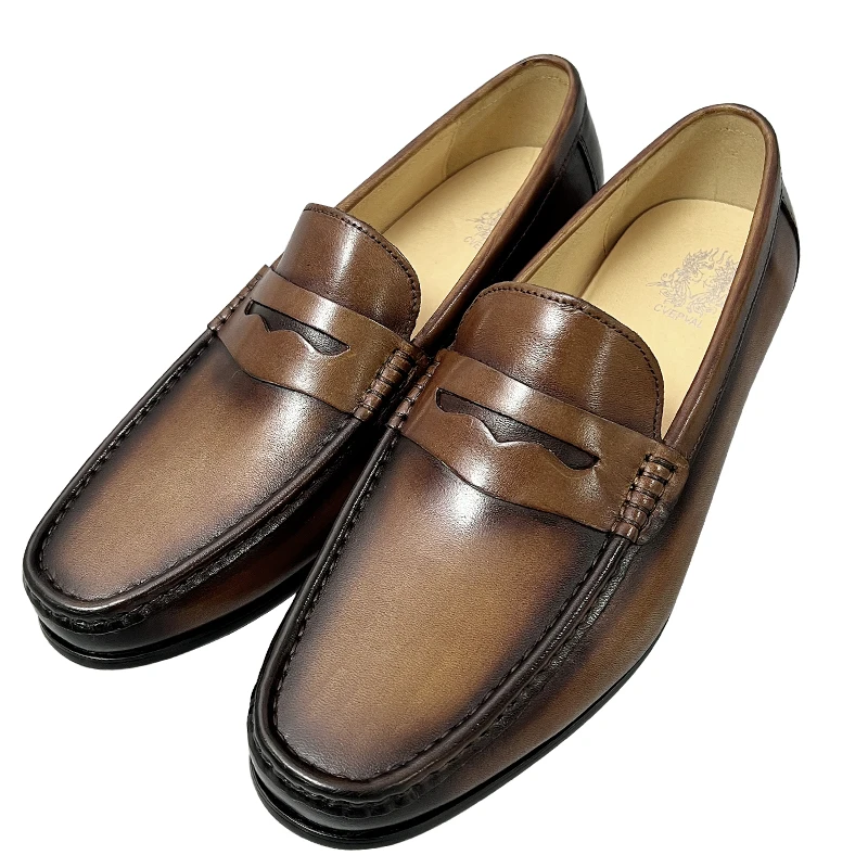 Men's Genuine Leather Slip-On Shoes Breathable Top Layer Cowhide Soft Rubber Sole Loafers Genuine Leather Casual Shoes