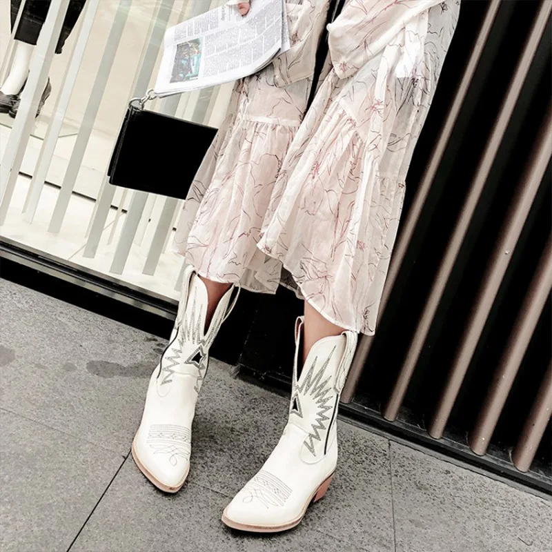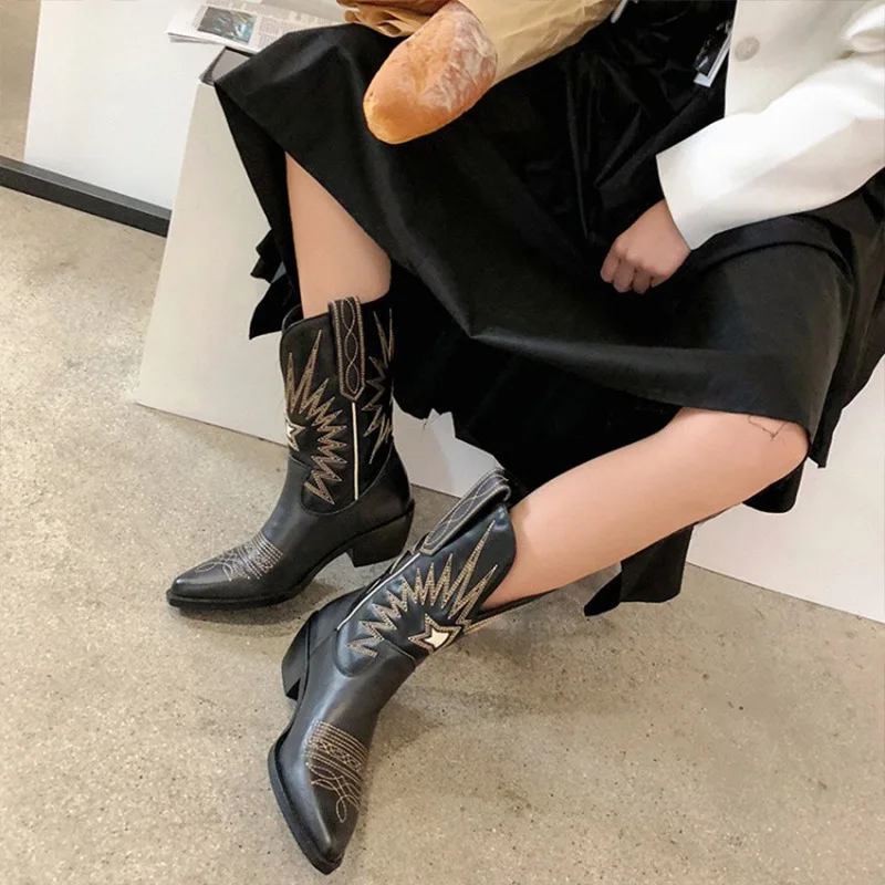Winter Fashion Cowboy Boots for Women Embroidery Leather Women Boots