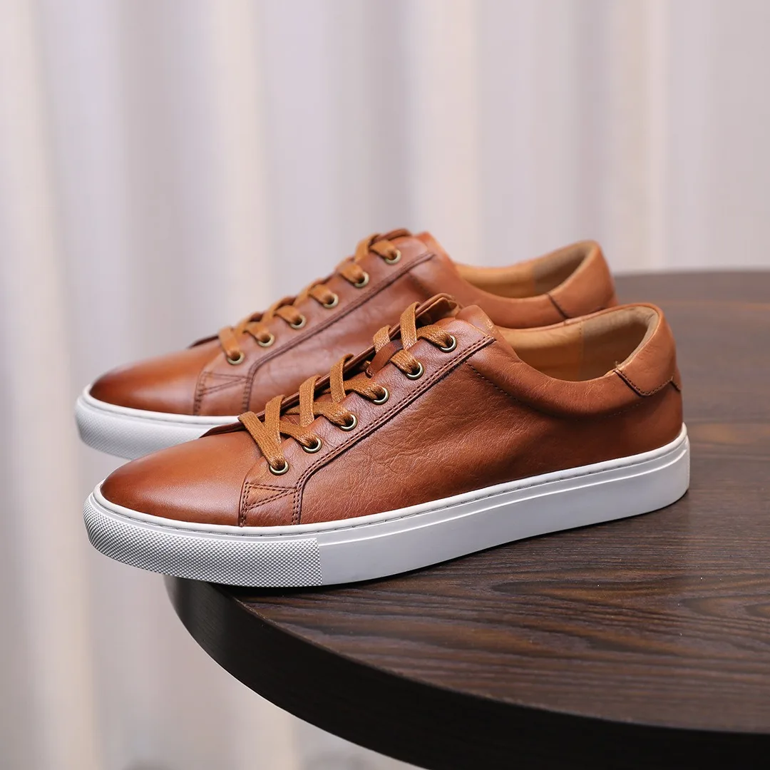 Luxury New Men's Retro Brown Casual Shoes - Business Court Sneakers Non-Slip Comfort