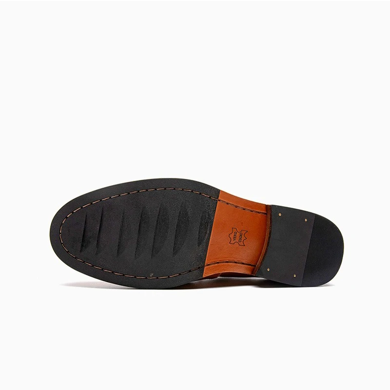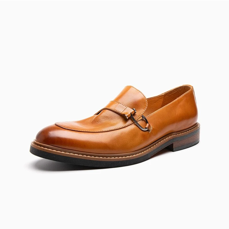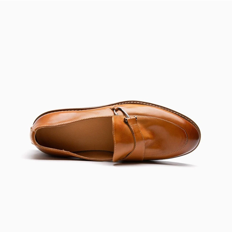 Men's Brown Leather Loafers Slip-on Style Dress Shoes Horsehide Casual Shoes for Business and Casual