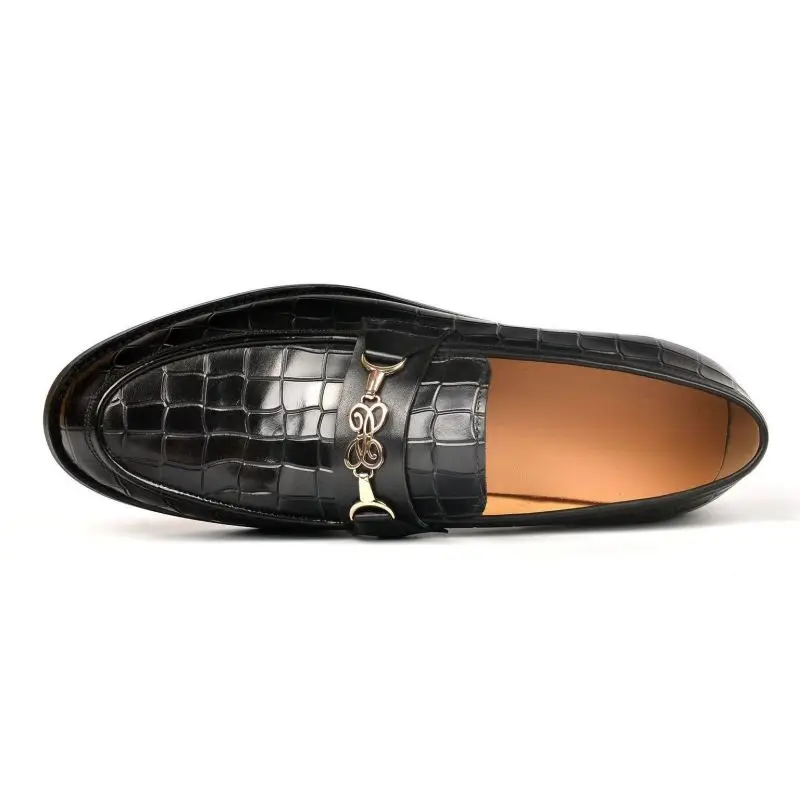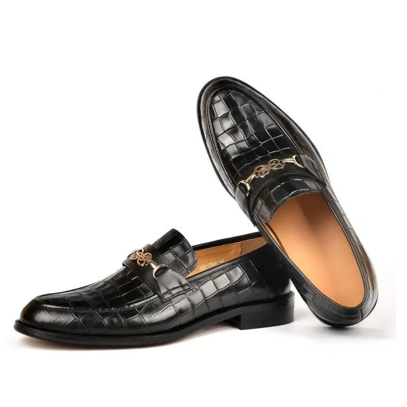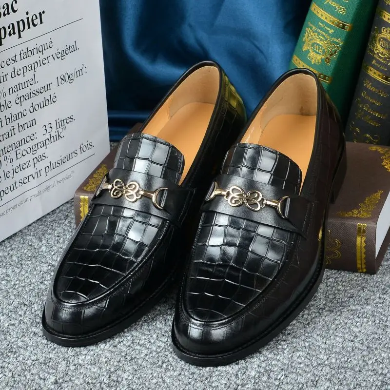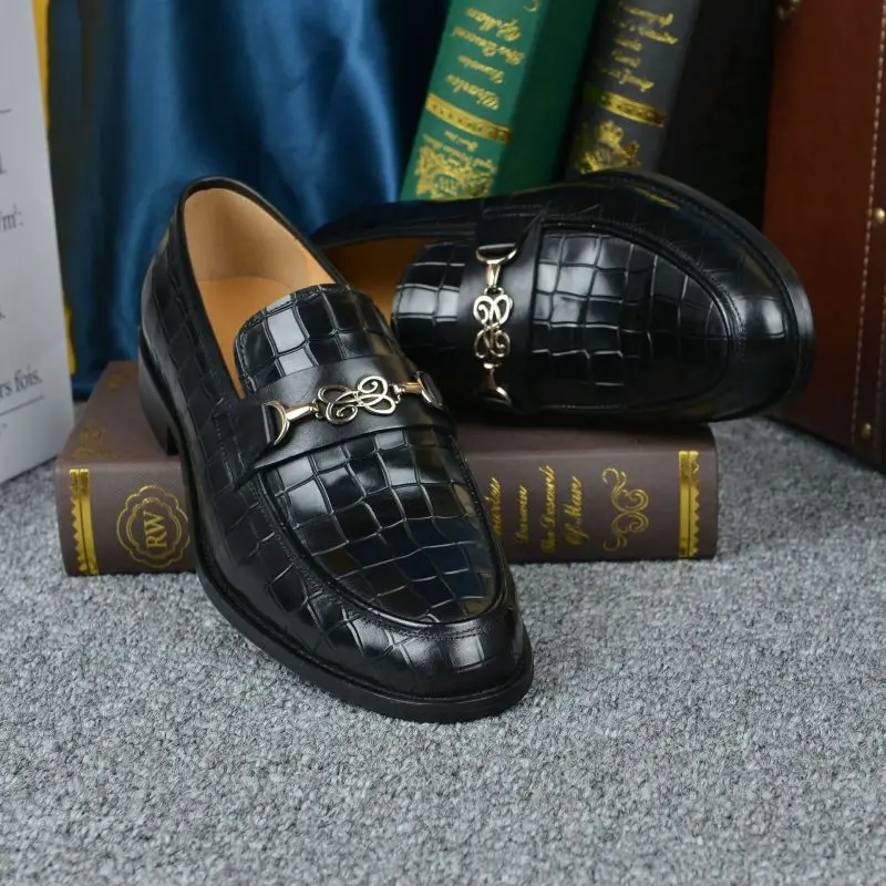 Wholesale Premium Genuine Leather Loafers Gold Buckle Classic Slip-On Dress Shoes for Men Business & Party (Black)
