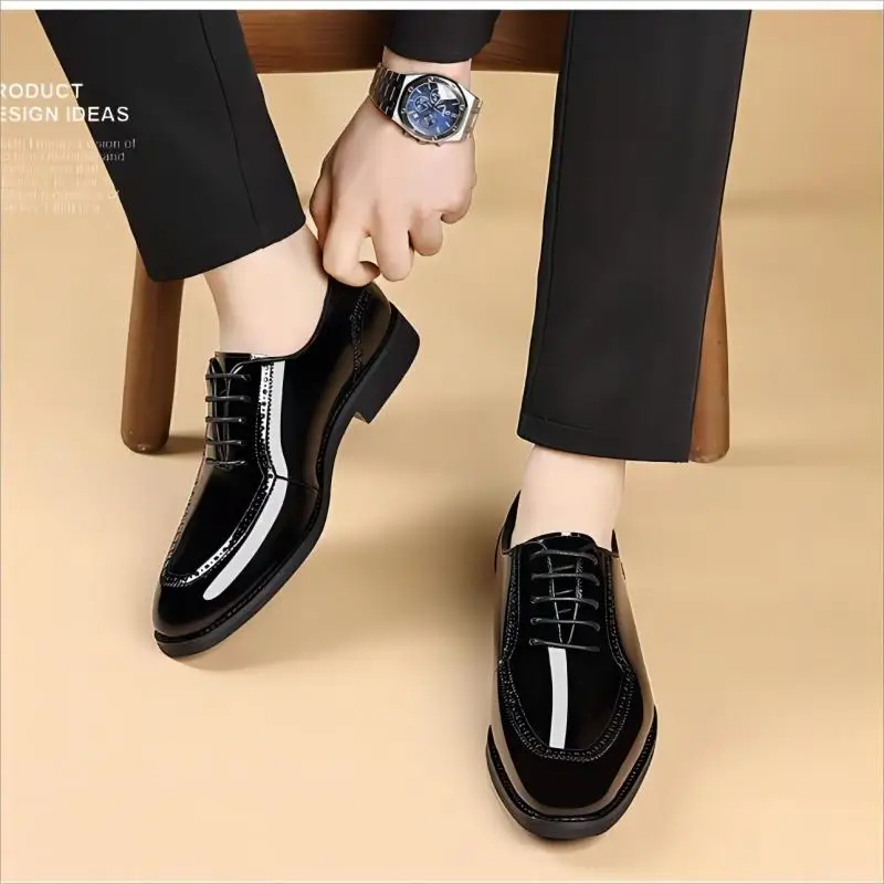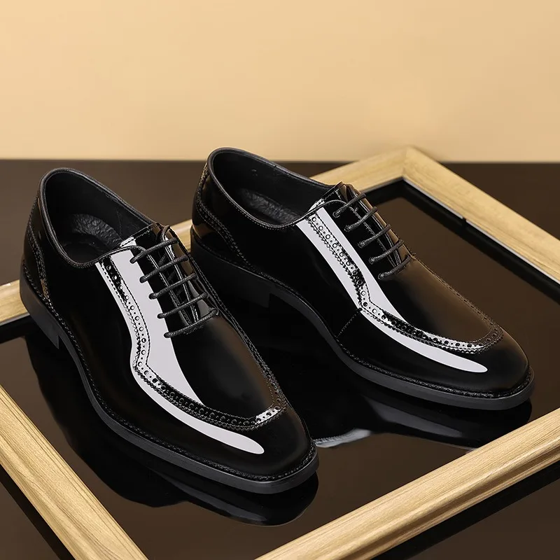 Wholesale 2026 Men's Shiny Patent Leather Brogue Oxfords Vintage Cognac Wingtip Formal Shoes for Wedding Groom