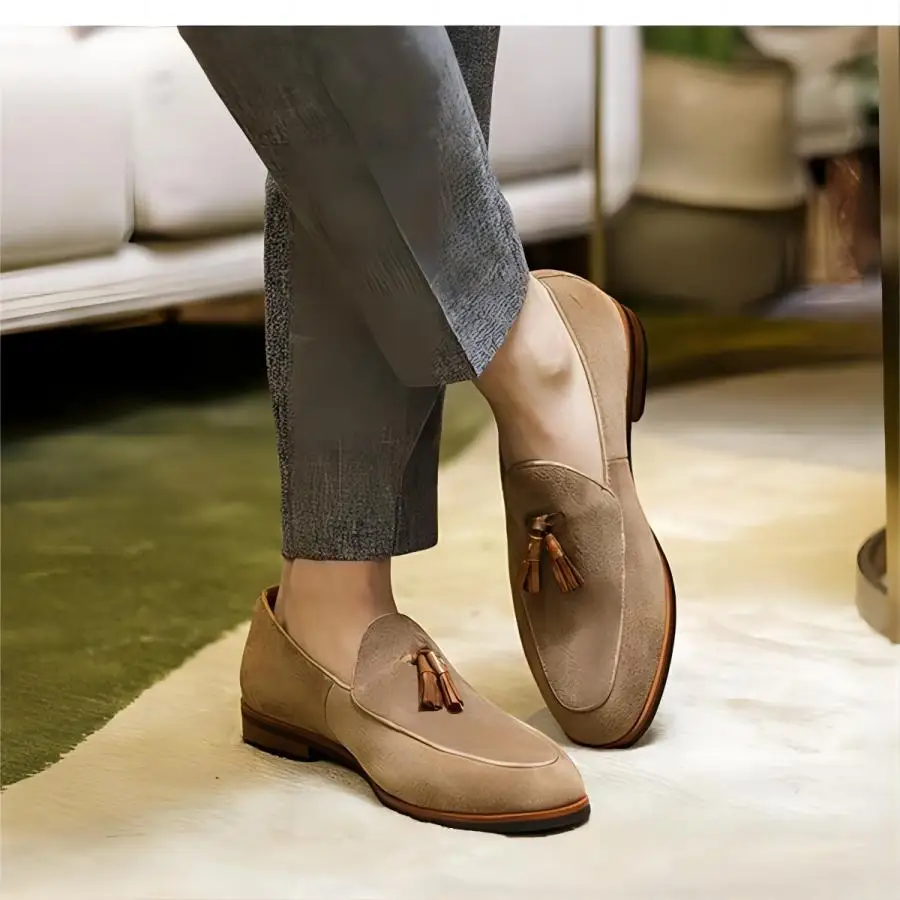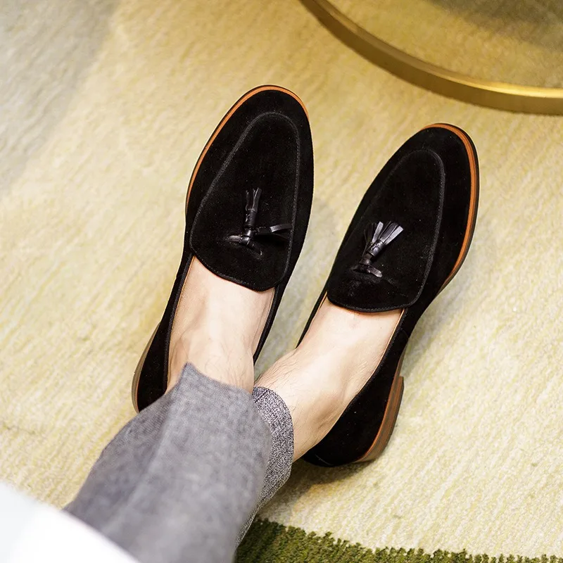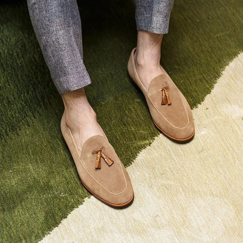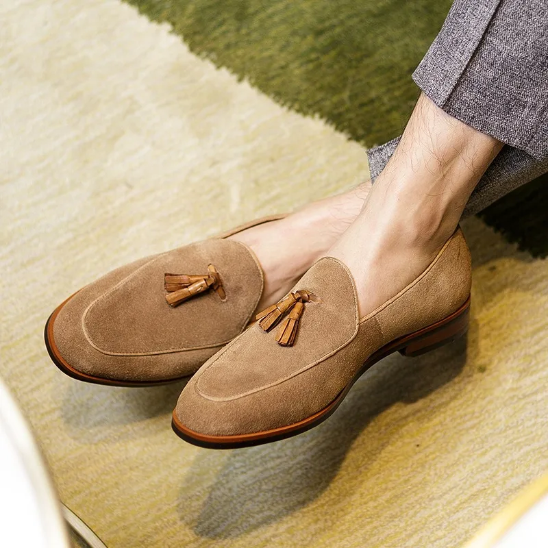 Handmade Italian Shoes Men's Suede Penny Loafers Hand-Knotted Tassels CEO Weekend Style Casual Shoes