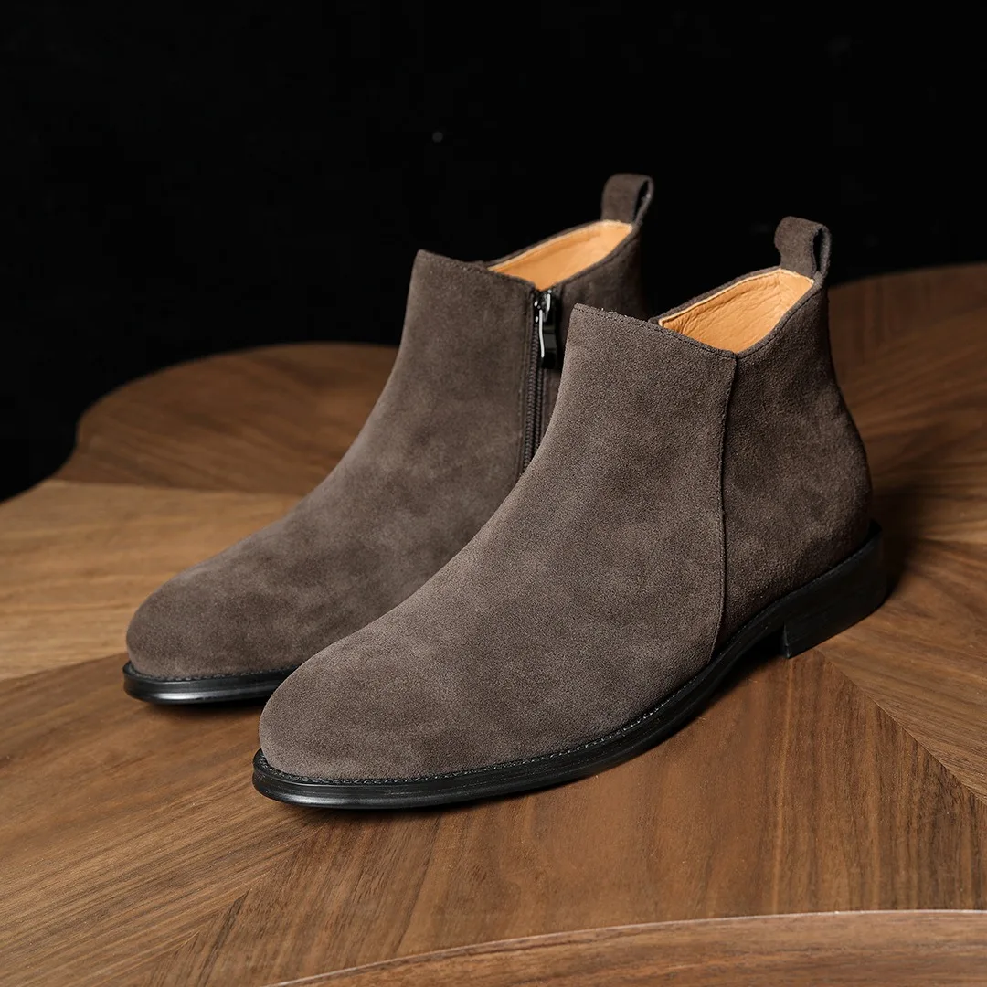 PREMIUM SUEDE ANKLE BOOTS Side Zipper Pull Loop for Easy Wear Italian-Inspired Casual Chic Chelsea Boots