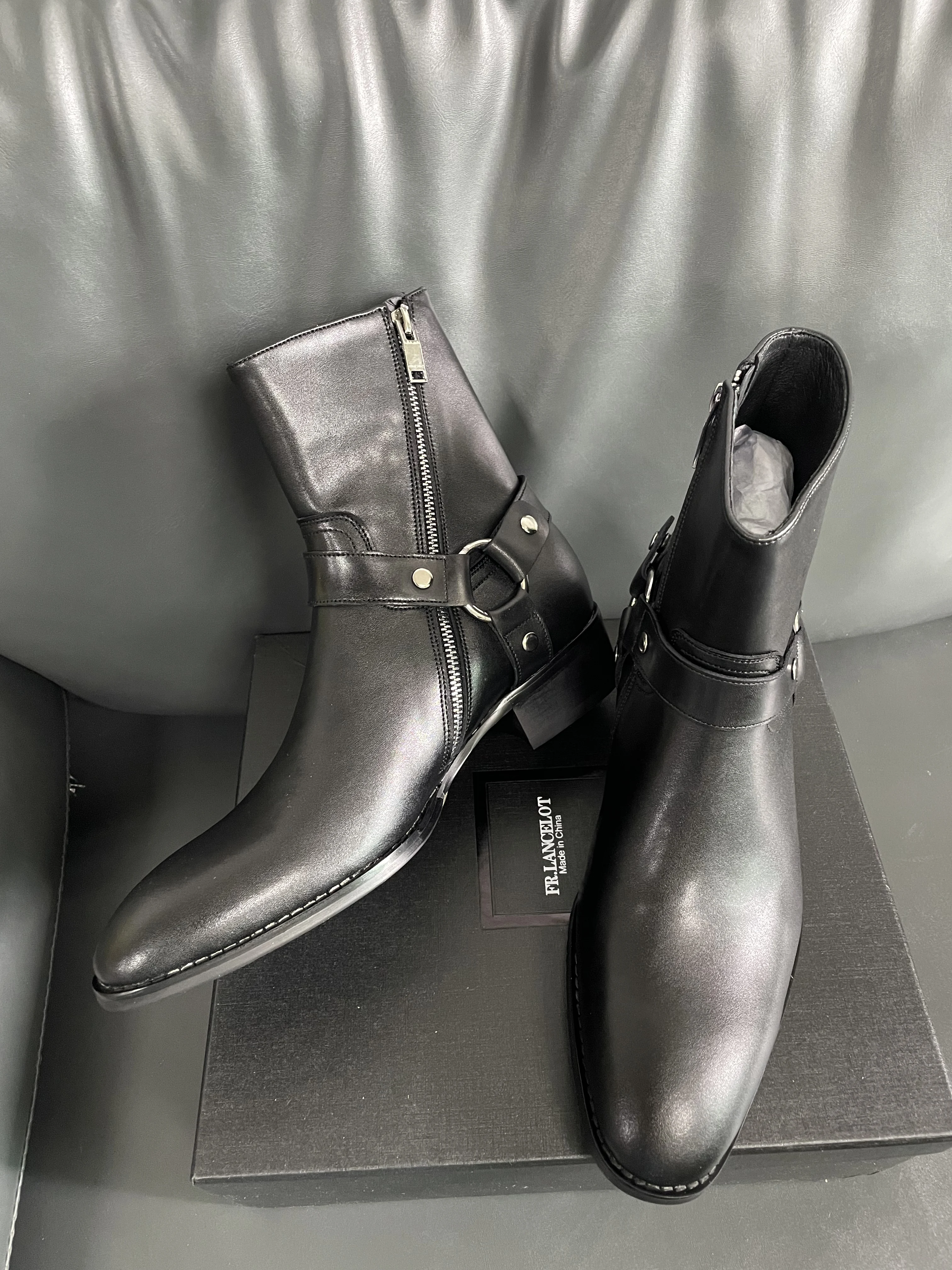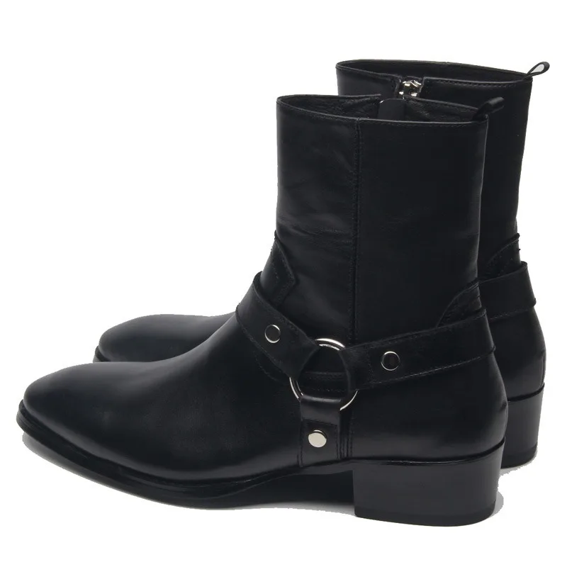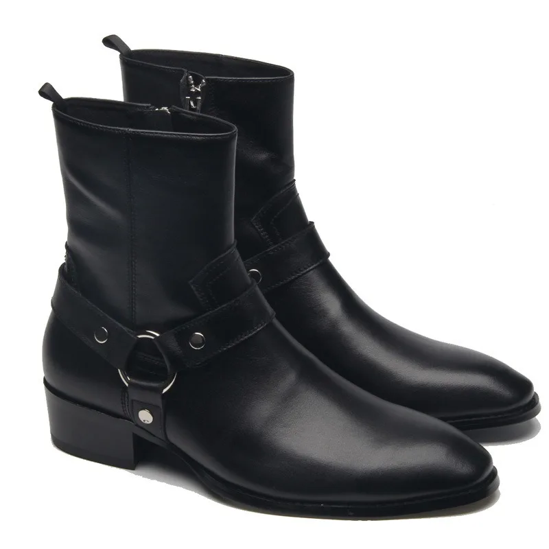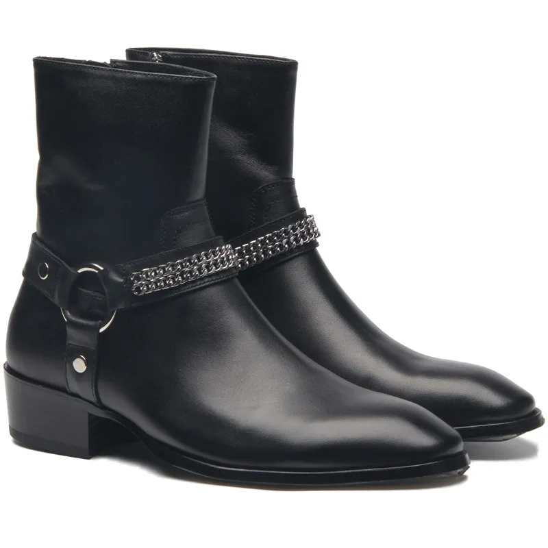 Classy Men Pure Leather Trendy Boots Side Zip Flat Fashion Business Ankle Genuine Leather Chelsea Boots