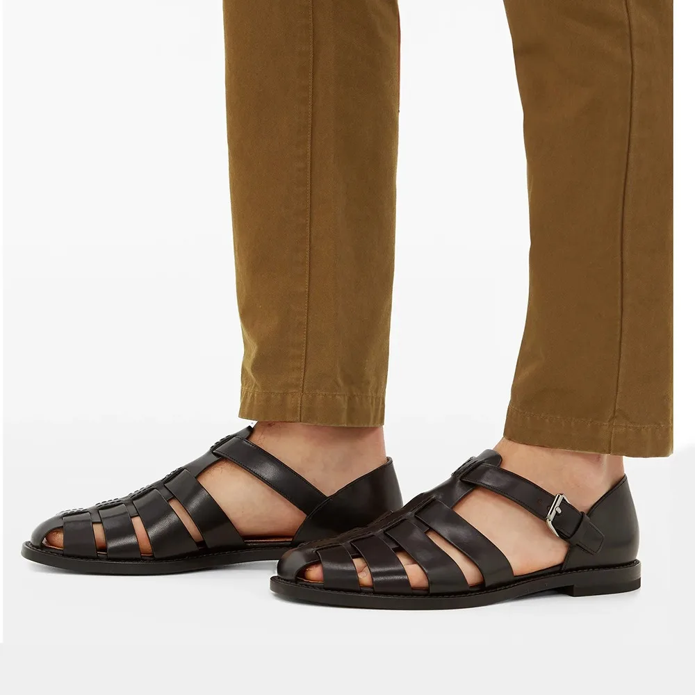 New Fashion Vintage Men Shoes Cow Leather Soft Breathable Casual Flats Summer Casual Sandals Black /Brown