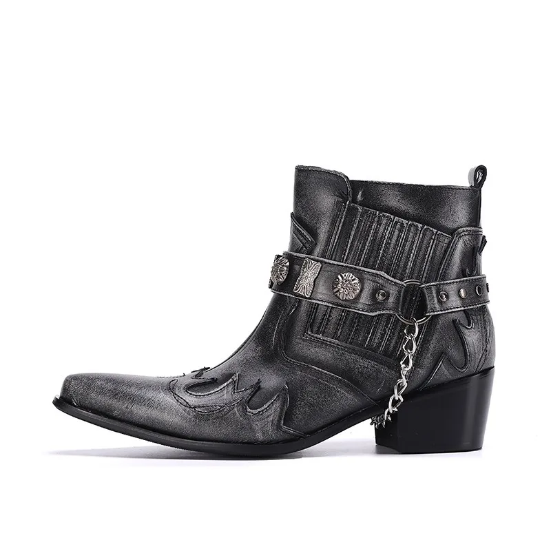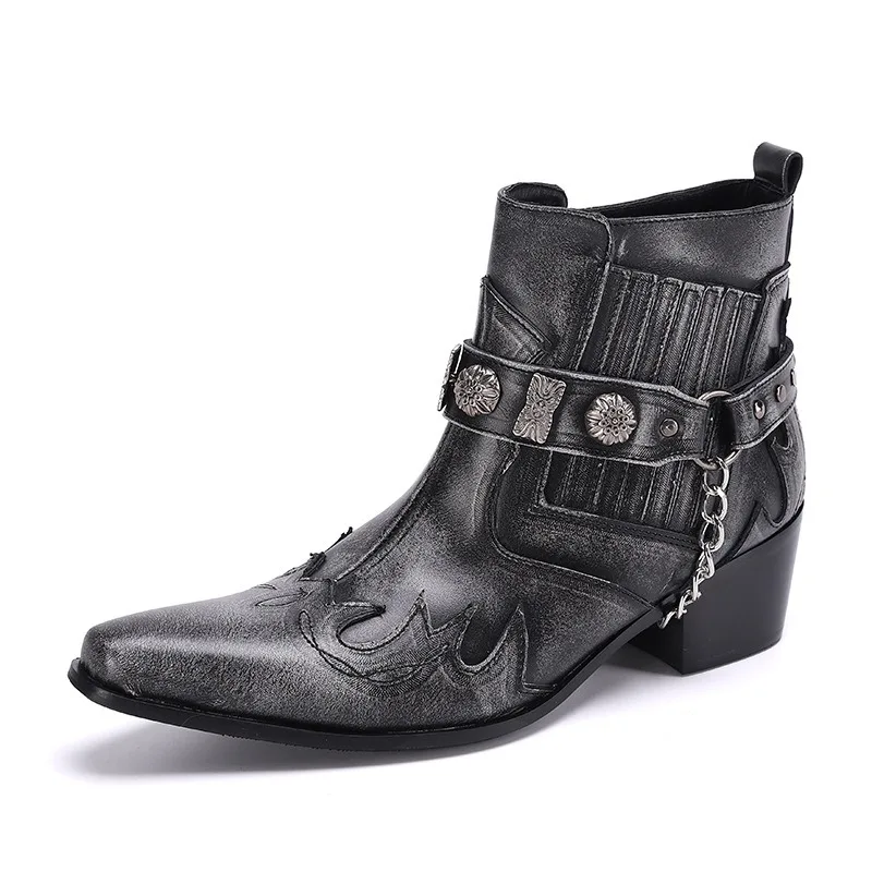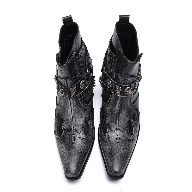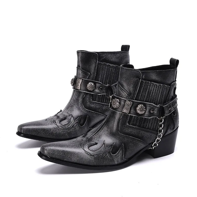 Hot Selling RTS Low Moq Luxury Unisex Handmade Men Moto Boots Dark Grey Retro martin Boots Cowboy Shoes Plus US13