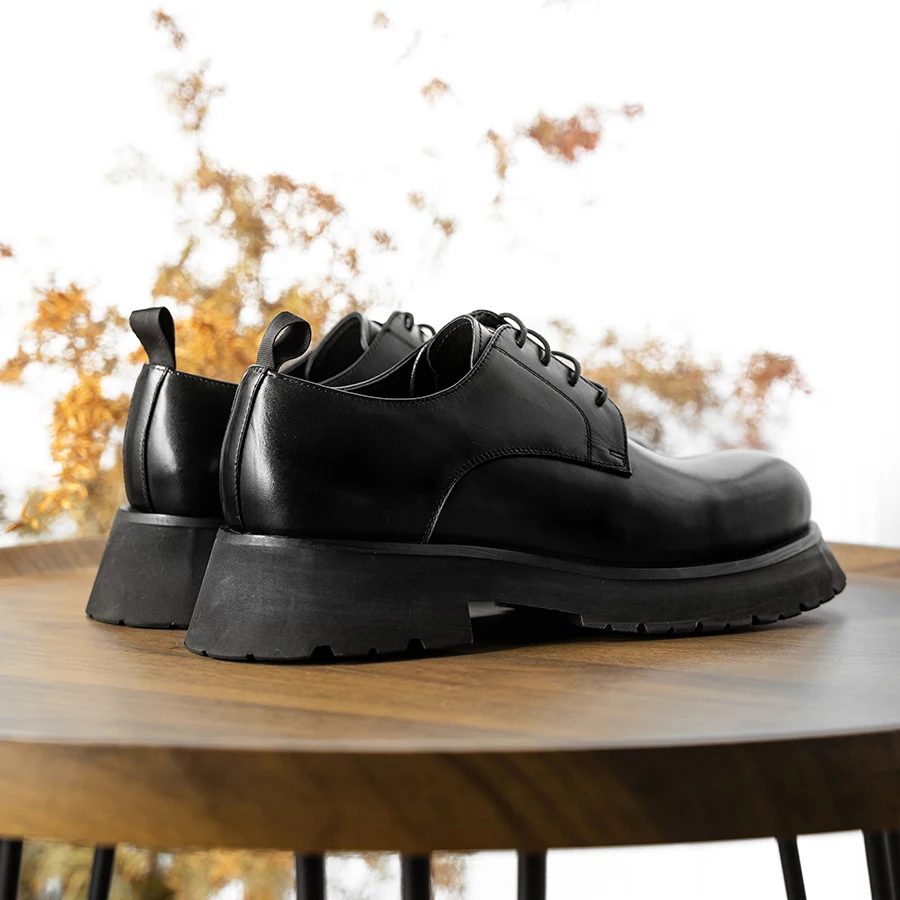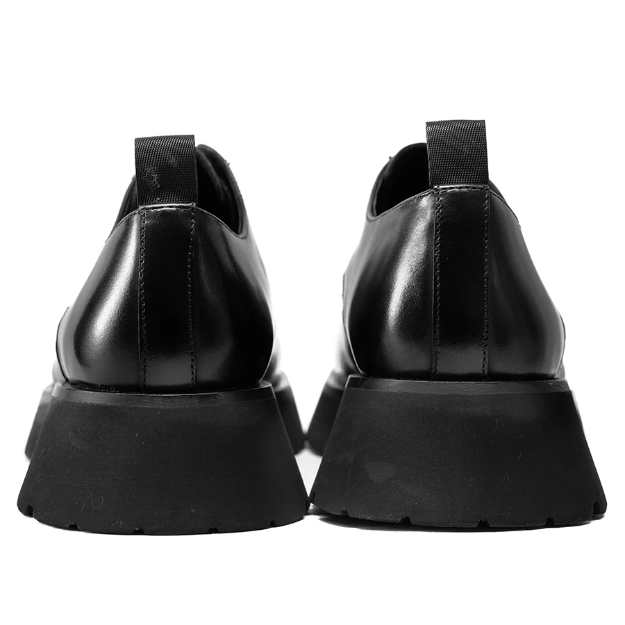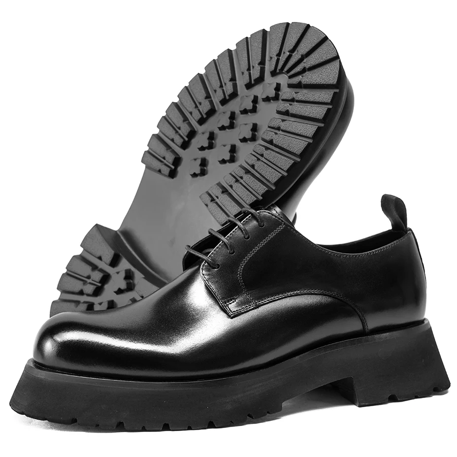 2026 Fashion Black Business Casual Genuine Leather Lace up Breathable Handmade Thick Platform Wedding Office Derby Shoes for Men