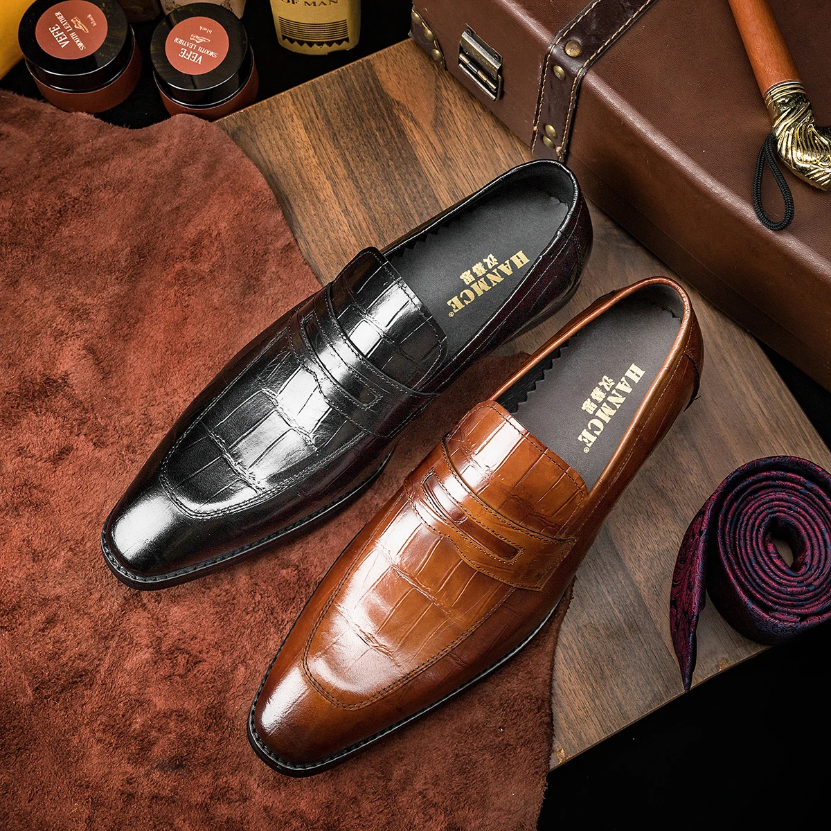 Wholesale Men's Pointed Toe Loafers | Genuine Cowhide Leather Slip-On Dress Shoes | Bulk Order 100 Pairs MOQ | OEM Custom Logo