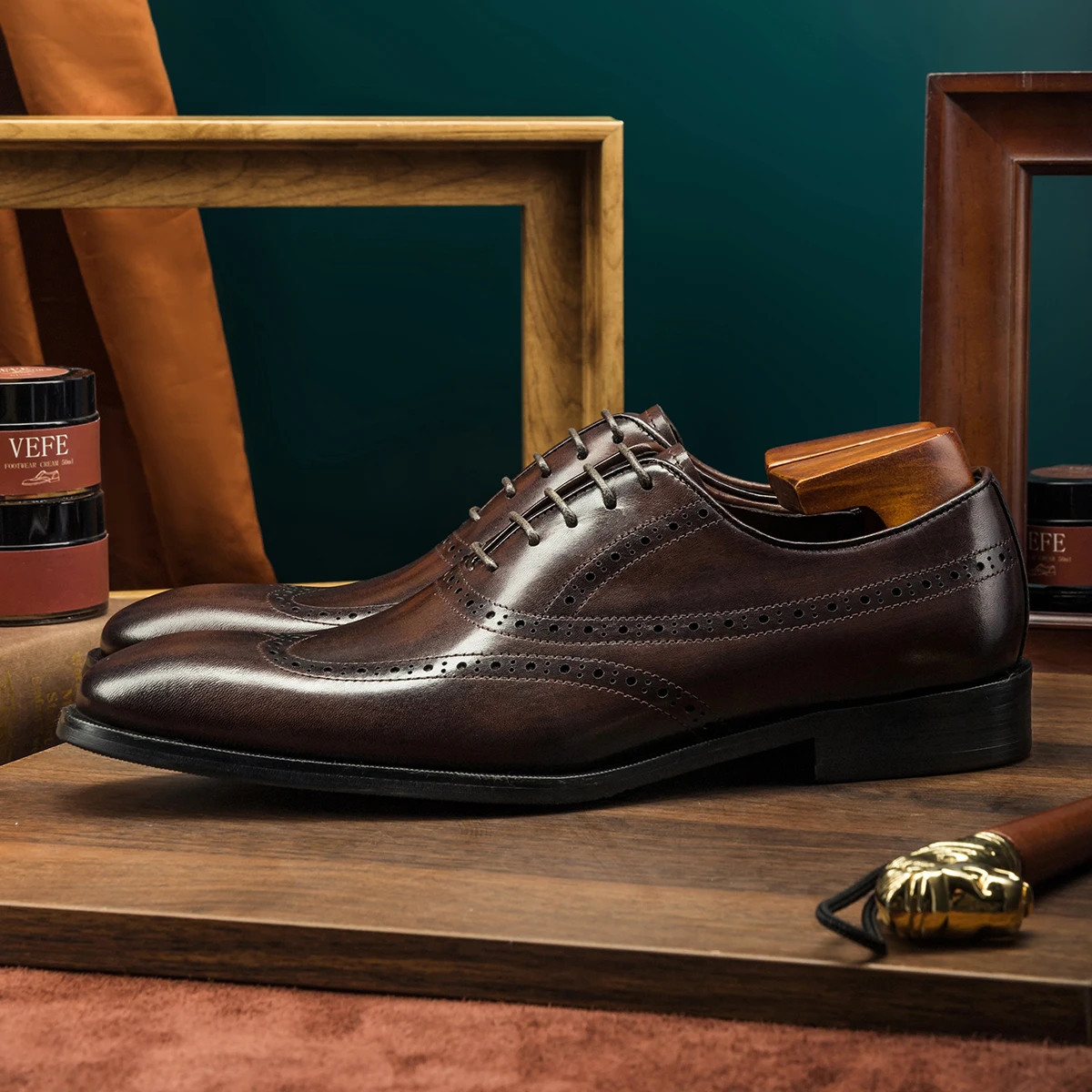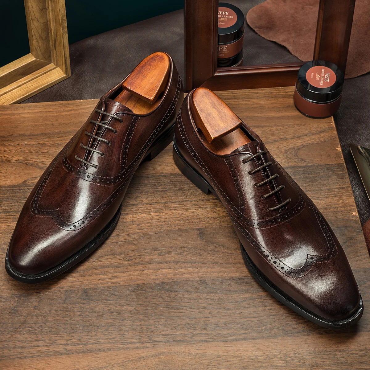 Yangjiang Factory Low Moq Luxury Brogue Shoes Genuine Leather Men's Dress Shoes