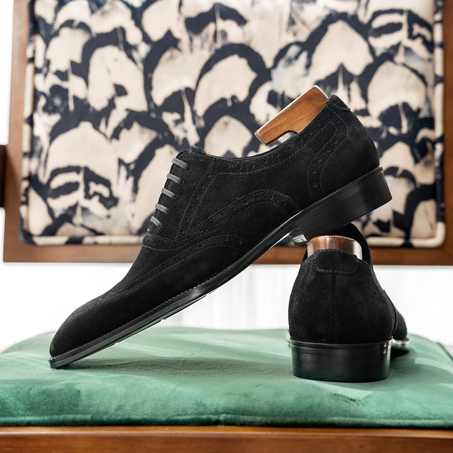 2026 New High End Men's Genuine Leather Men's Shoes Square Head Carved Leather Shoes Men's Business Dress Oxford Shoes