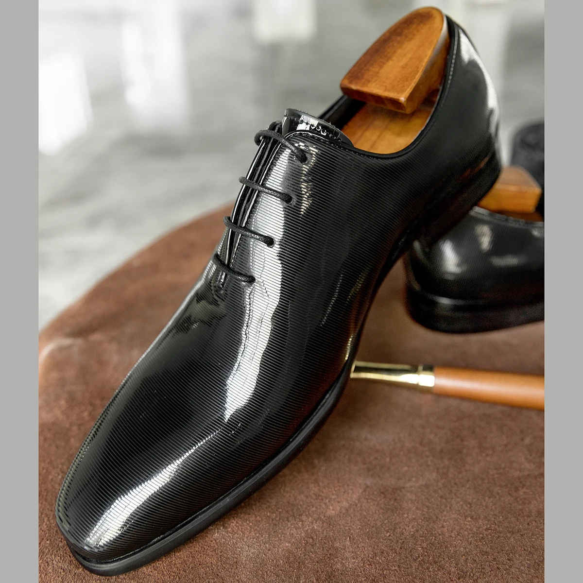 Patent Leather Formal Official Breathable Oxford Shoes for Men Handmade Classic Italian Design Lace up