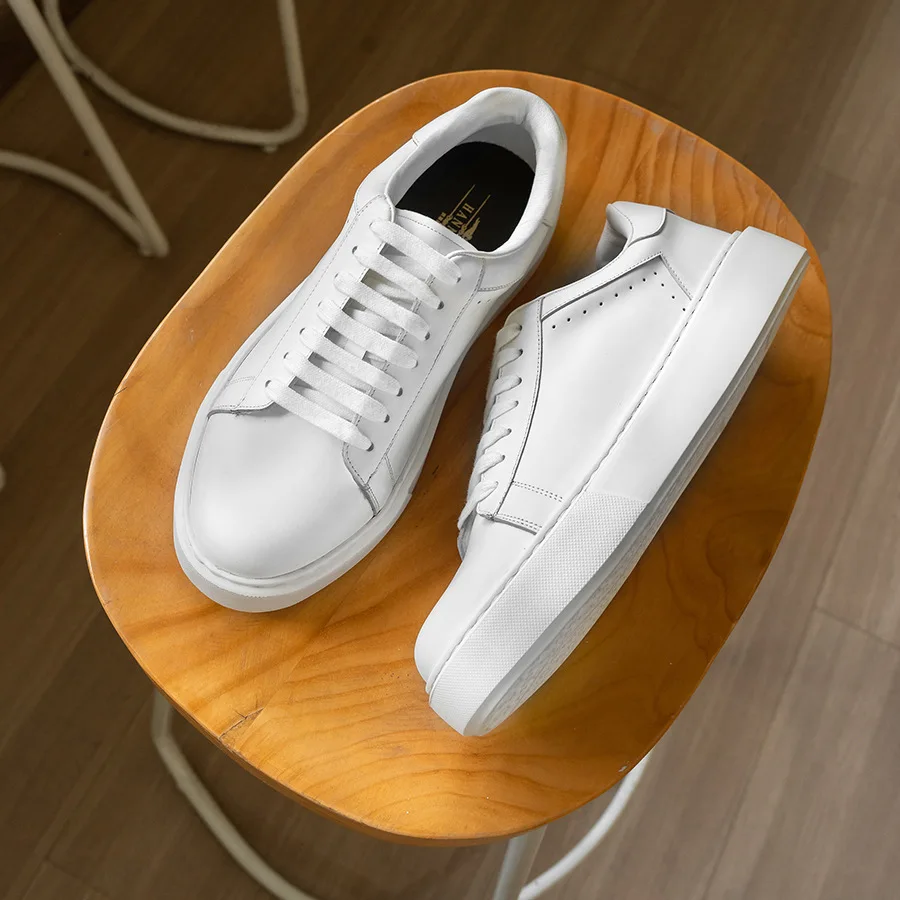 Autumn Men's Casual High Quality Cowhide Leather Sneakers Trendy Chunky Shoes Comfortable Thick Soles for Height Increase for
