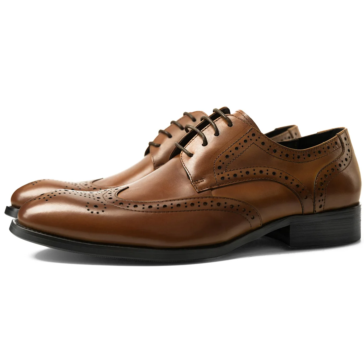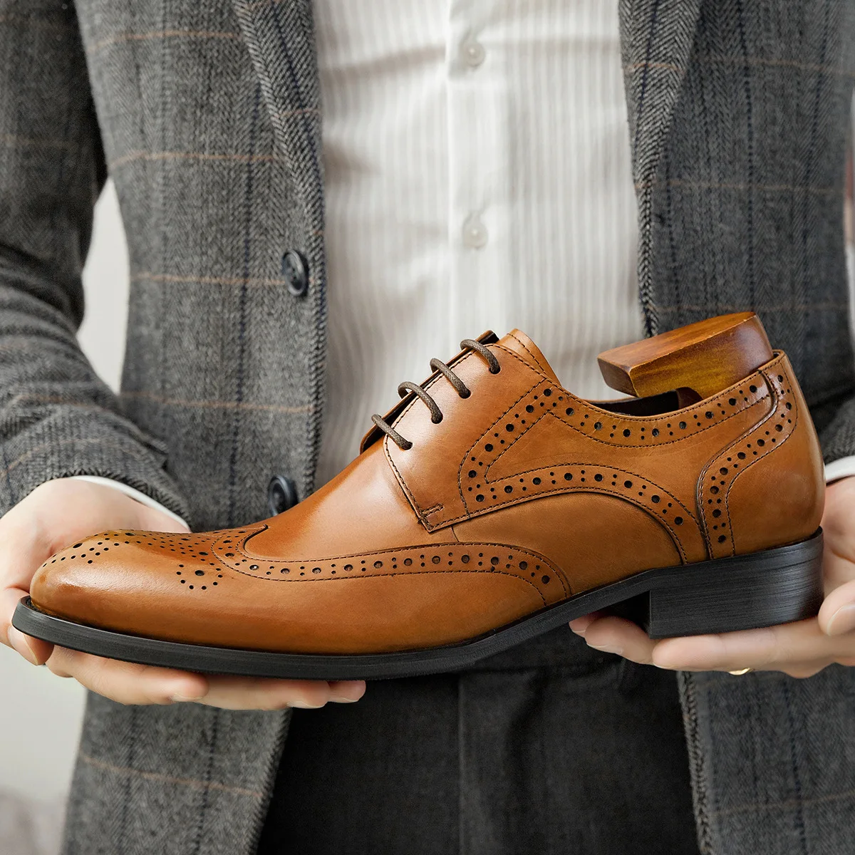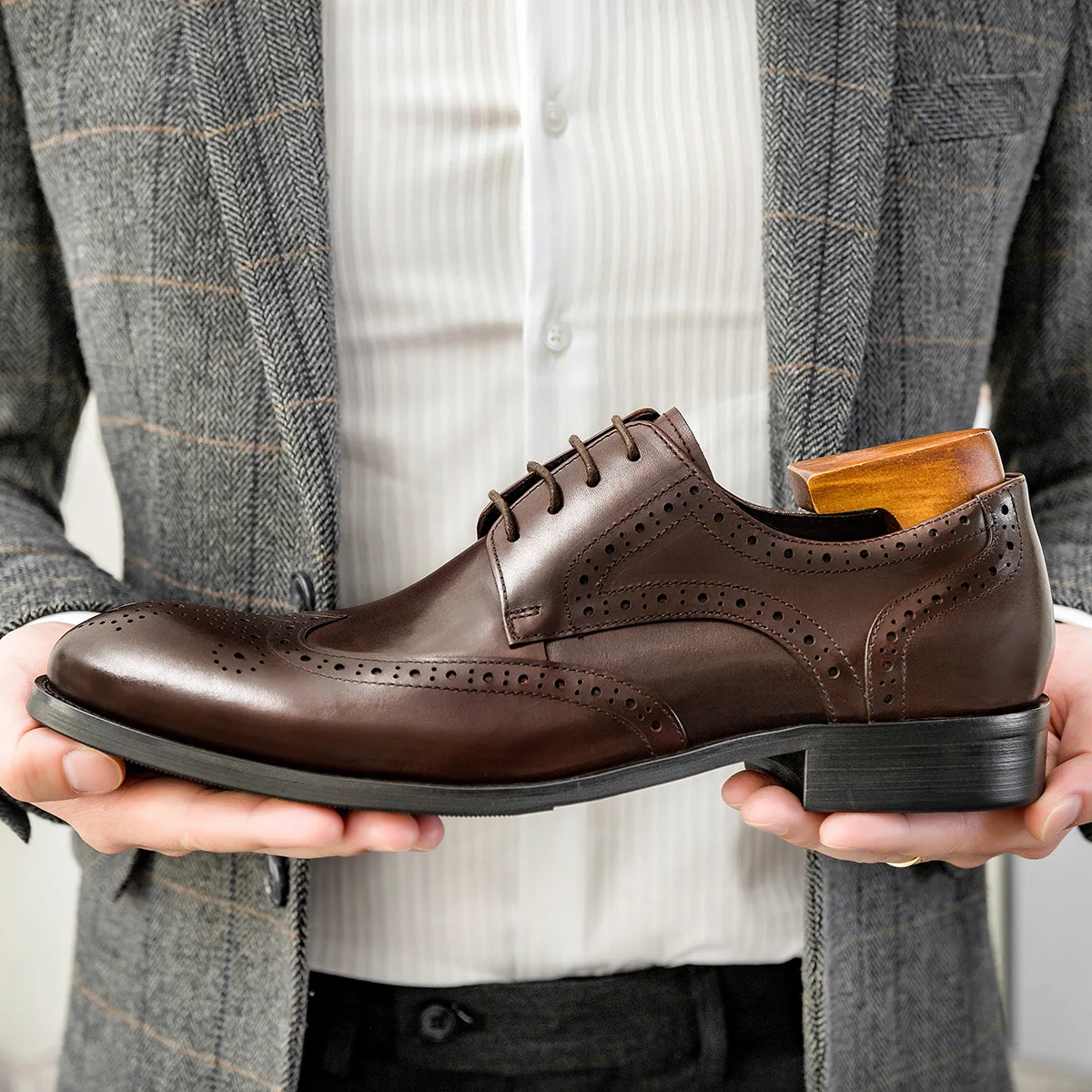 Men's New Style British Leather Brogue Business Shoes Carved Casual Wedding Shoes Solid Pattern Pointed Toe for Autumn Season