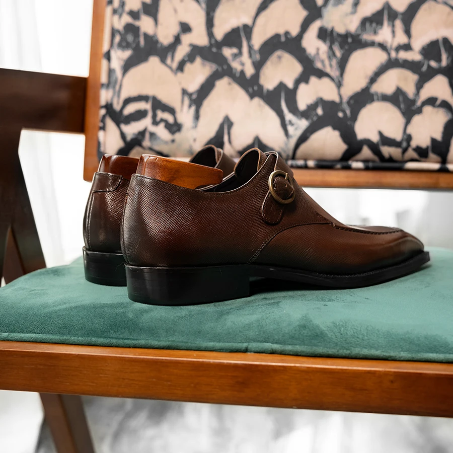 2026 Men's Business Formal Leather Shoes Korean Style Autumn Trendy Square Toe with Single Buckle Cowhide Monk Style
