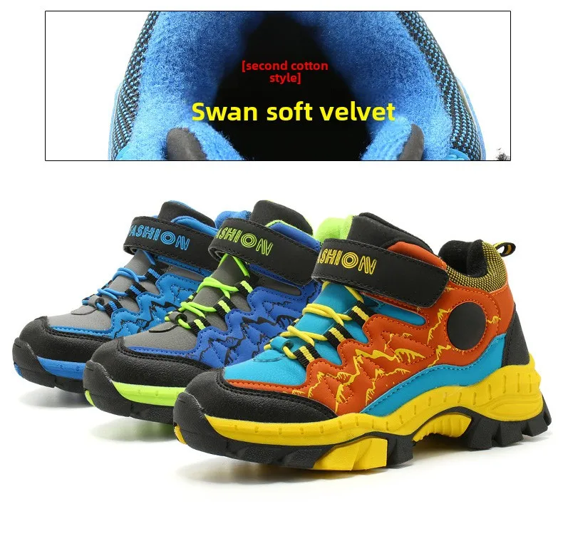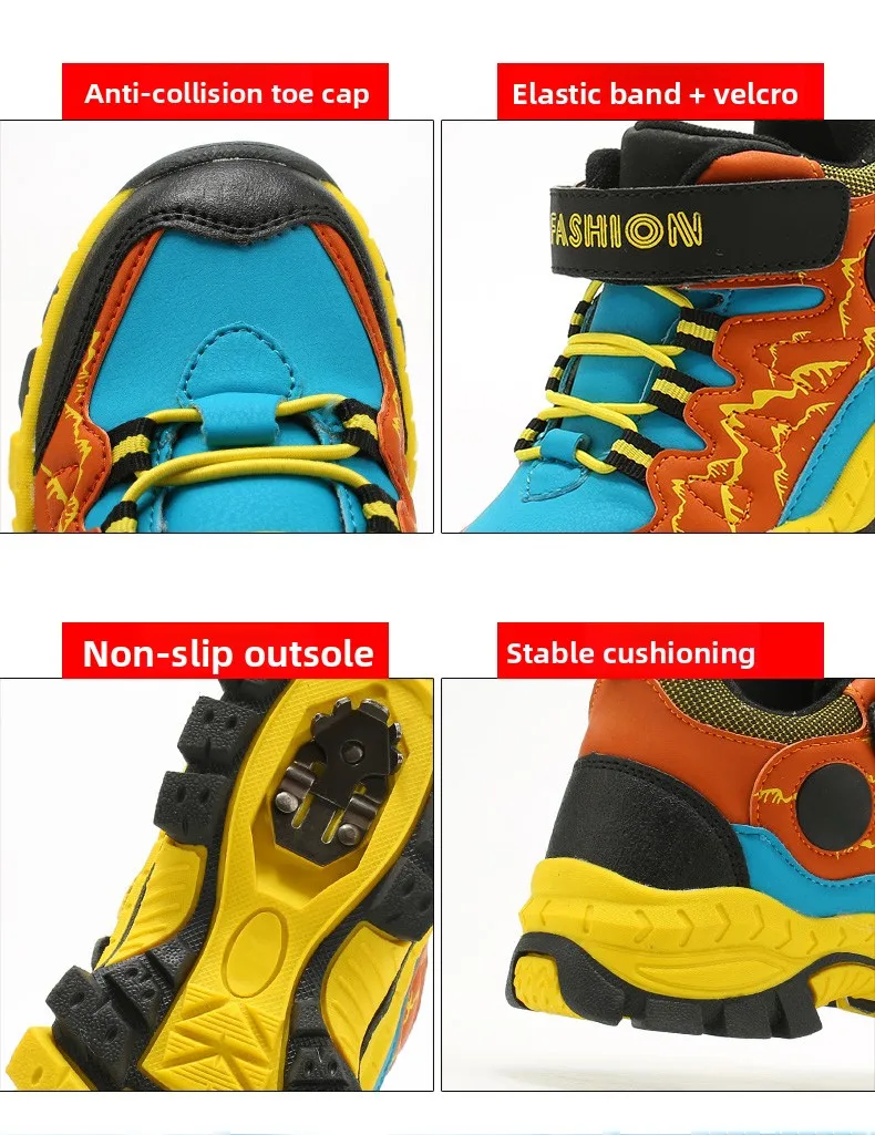 Waterproof Outdoor Hiking Boots for Boys-Recyclable Cushioning Height Increasing Toe Nylon Upper Cotton Lining