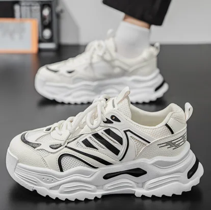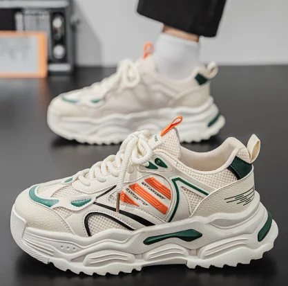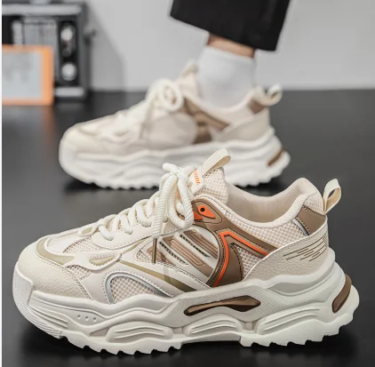 2026 Men's Summer Sports Shoes with Mesh and Thick Sole Trendy Dad Sneakers Genuine Leather Lining