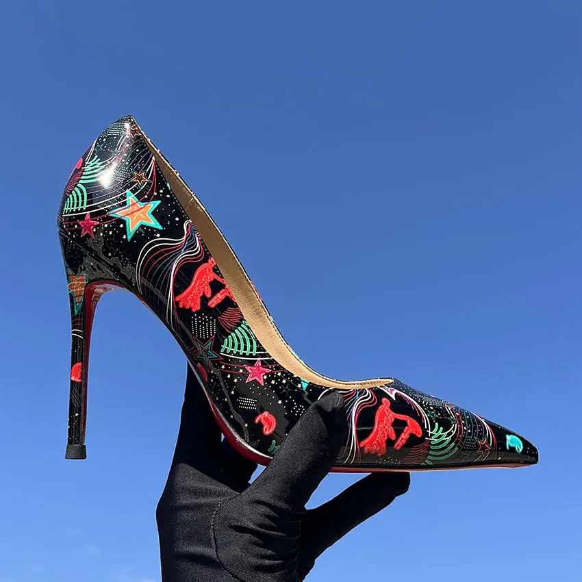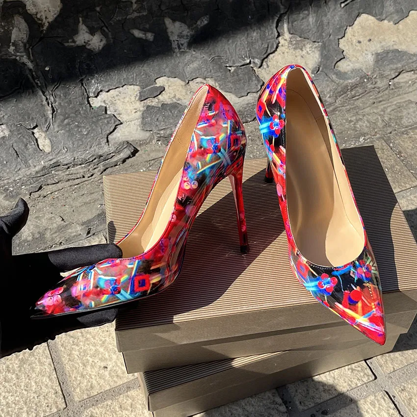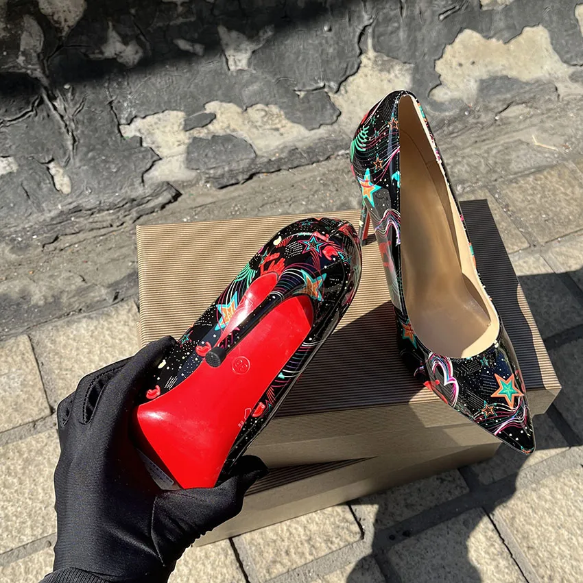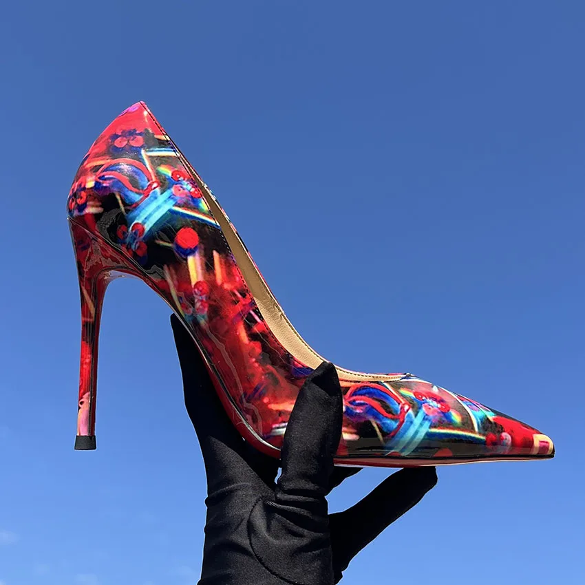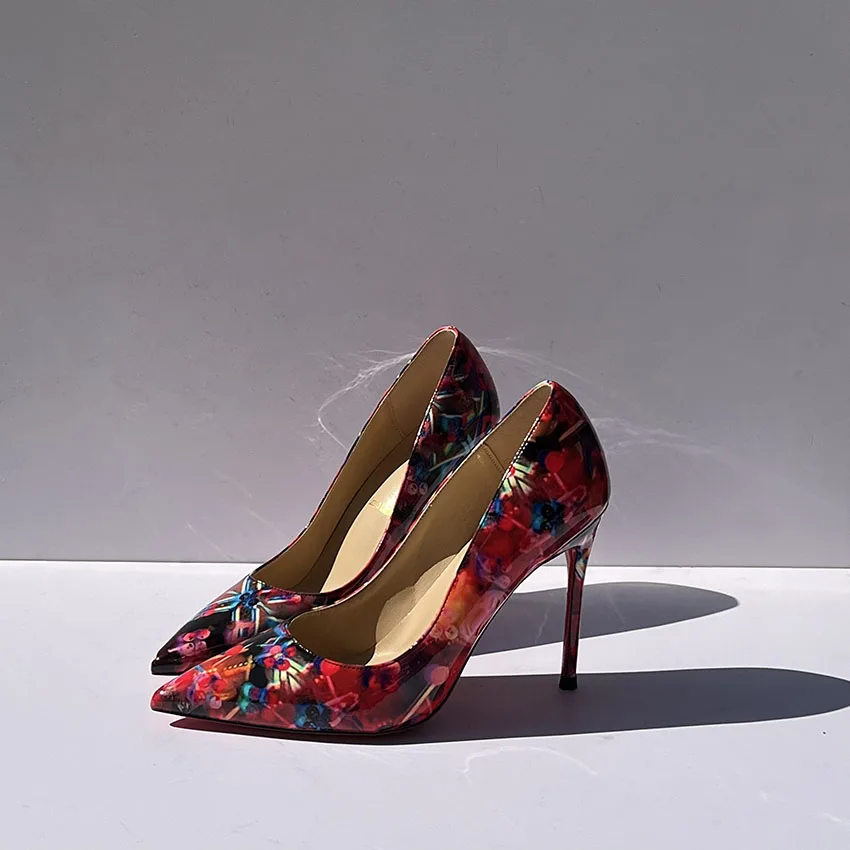 2026 New African Women Colorful Office Pump Dress Red Bottom High Heels 8-12cm Pointed Toe Patent Leather Upper Outdoor Wear