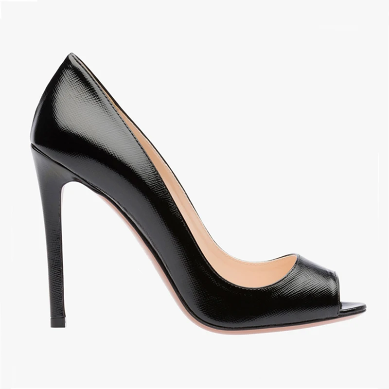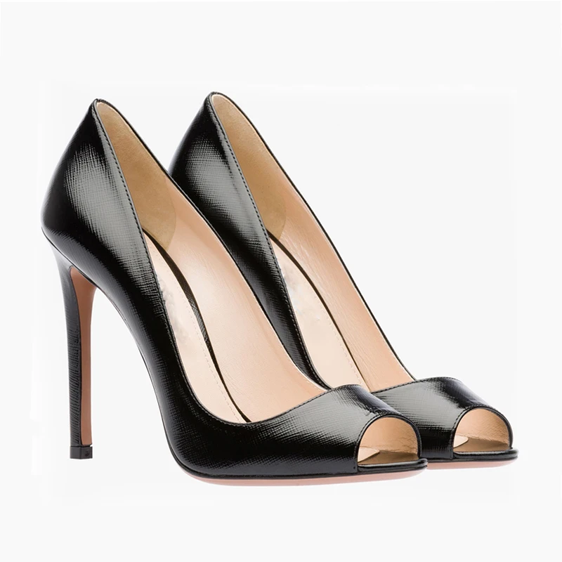 Wholesale Black Genuine Leather High Heel Open Dress Sexy Women Shoes Peep Toe Shoes for Ladies