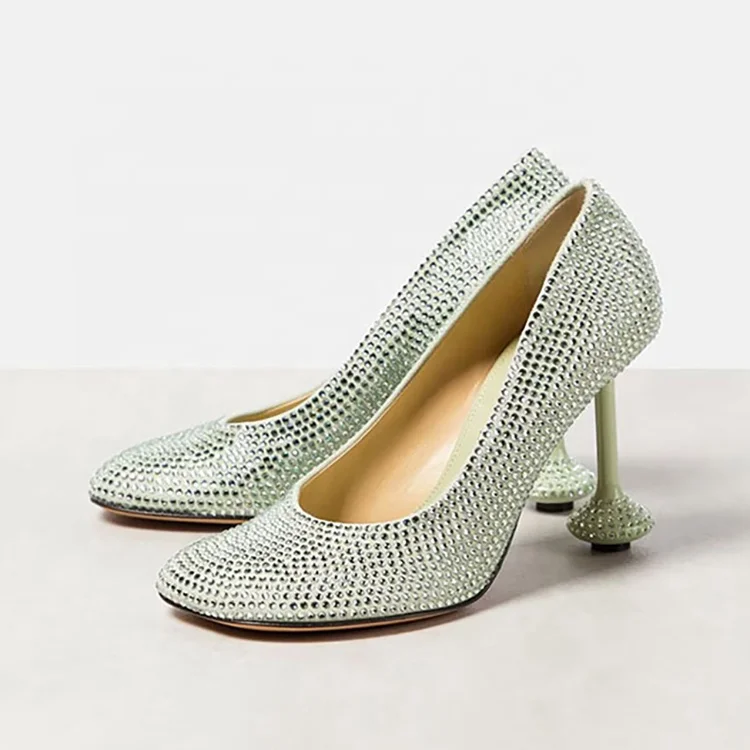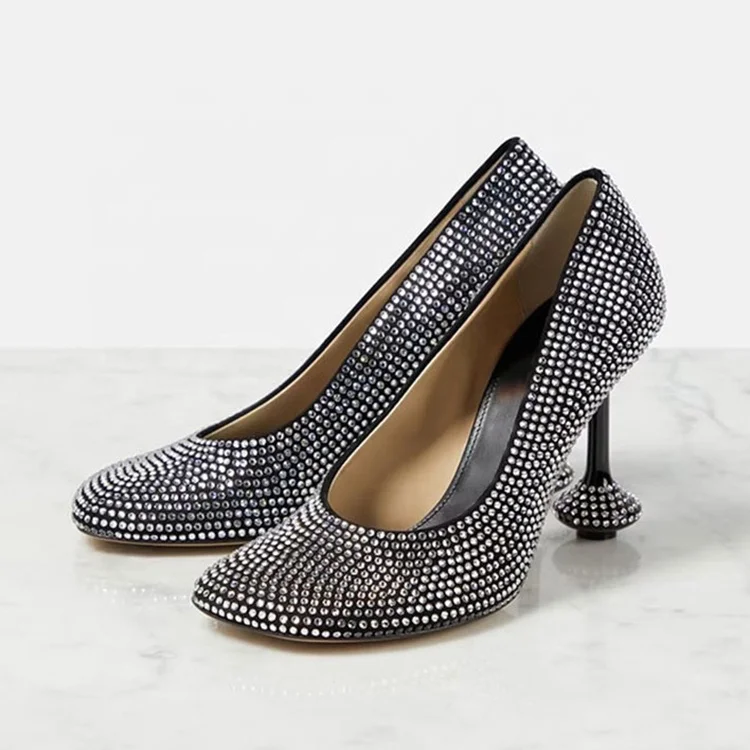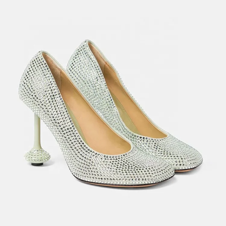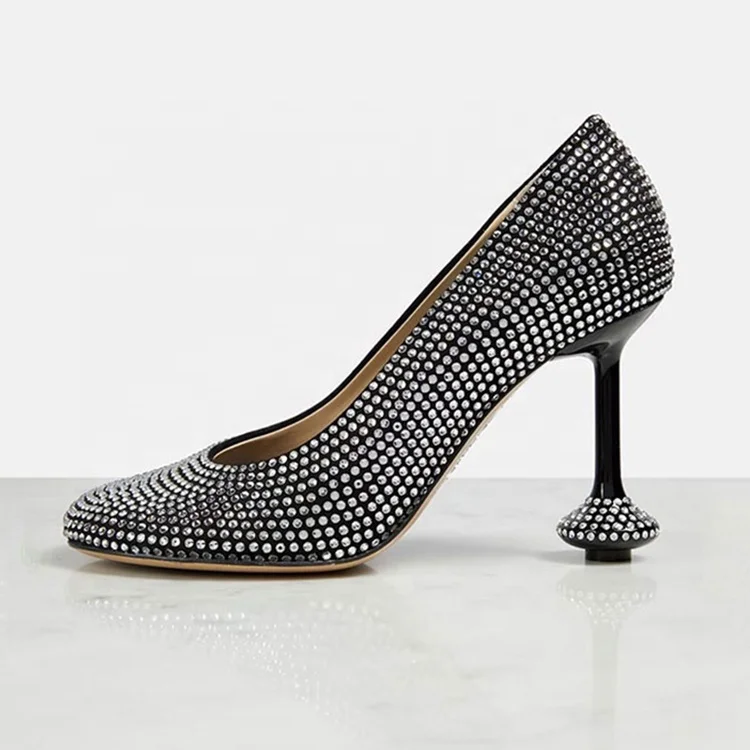 Elegant Ladies High Heel Party Wearing Dress Shoes Super Round Toe Diamonds Girls High Heel Shoes