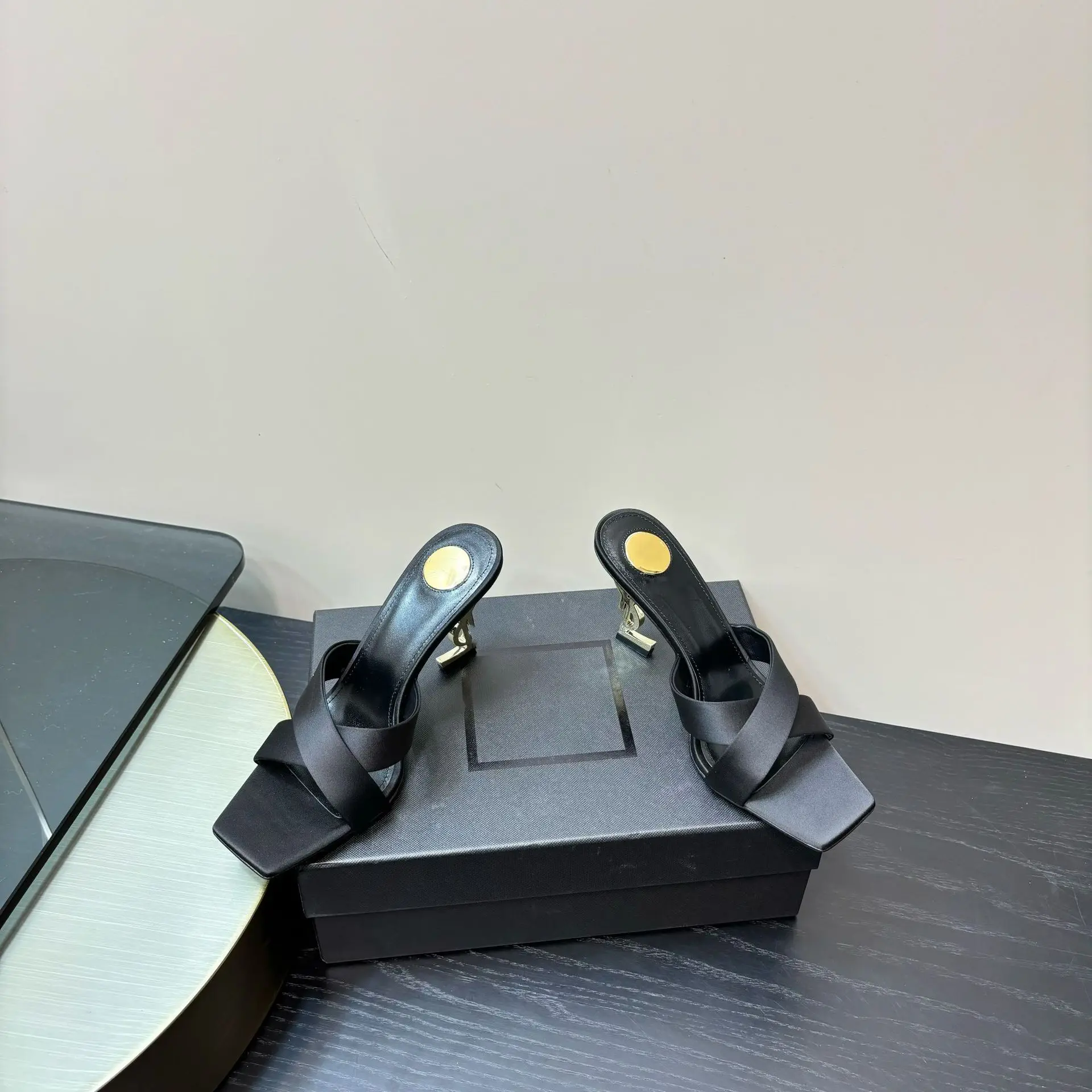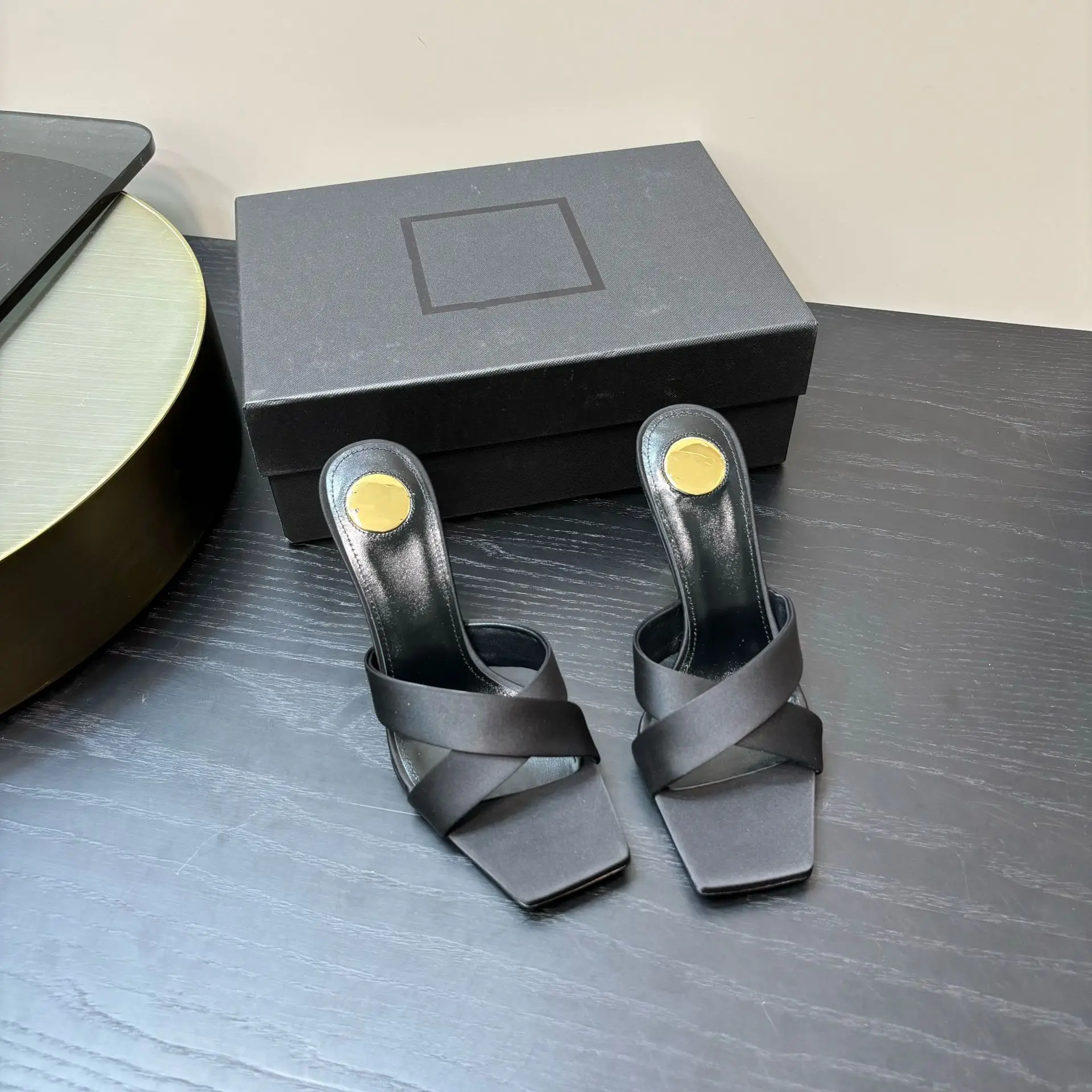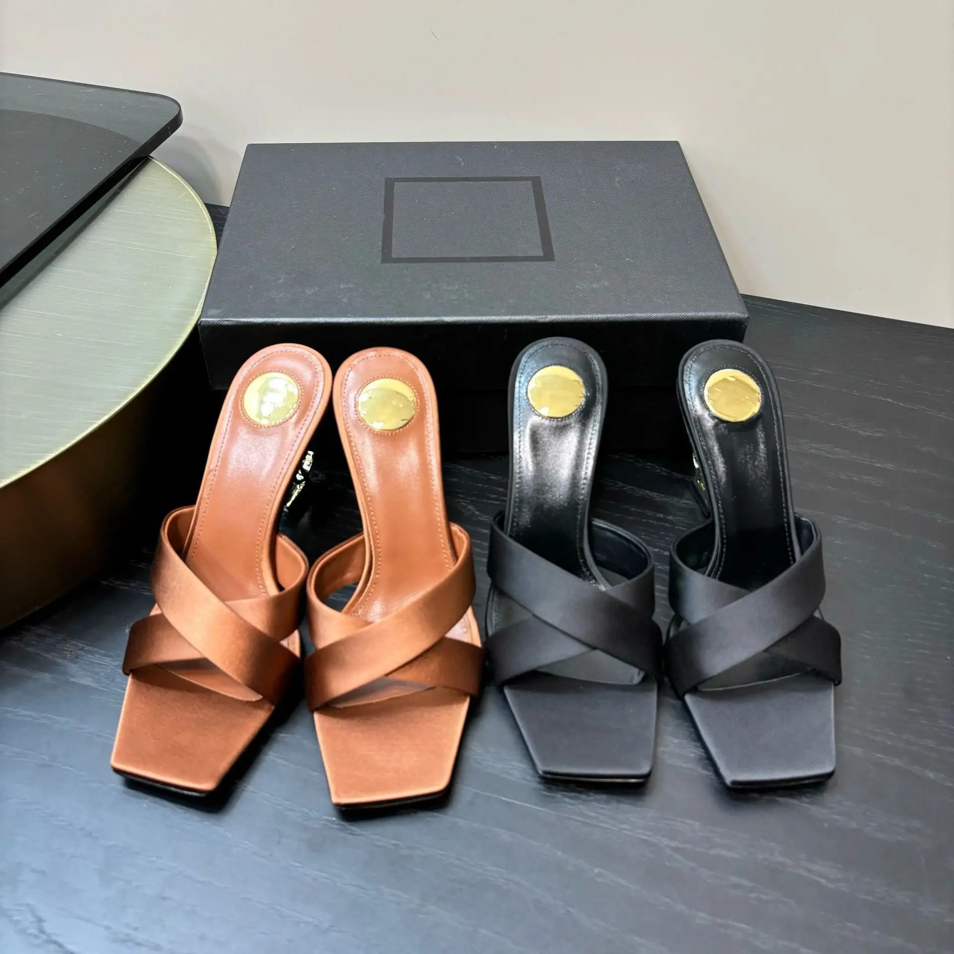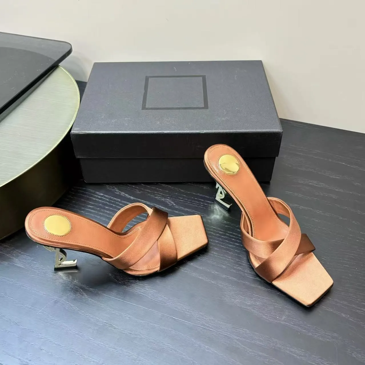 Women's Summer Fashion Sexy Open Toe High Heels 25 New High Set Cross Strap Metal Silk Slippers Thin Height Increasing Heels