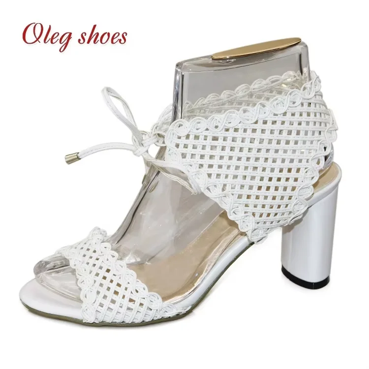 2026 Brand New Women's High Heeled Sandals Breathable Crystal Lace Ankle-Wrapped Evening Dress Party Shoes
