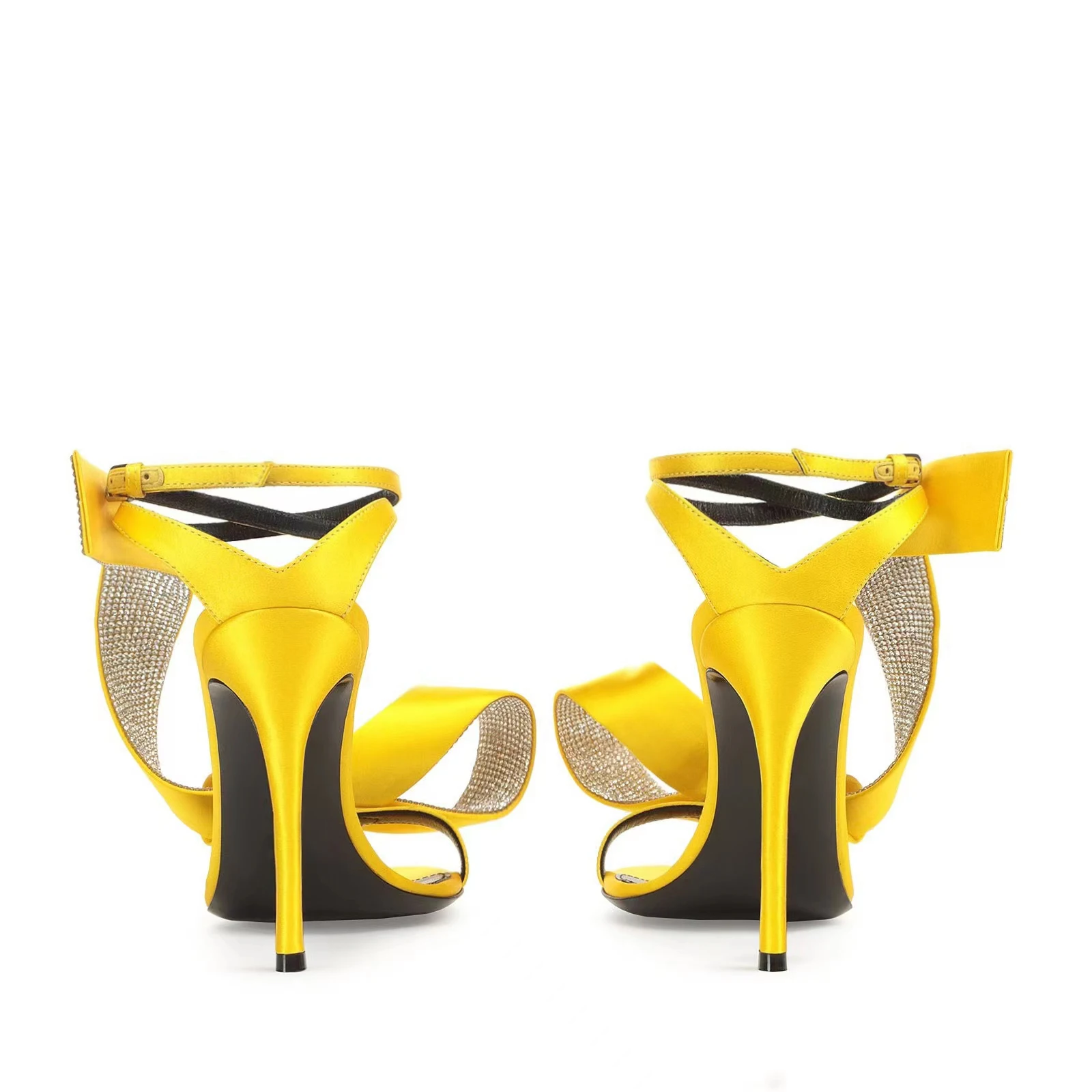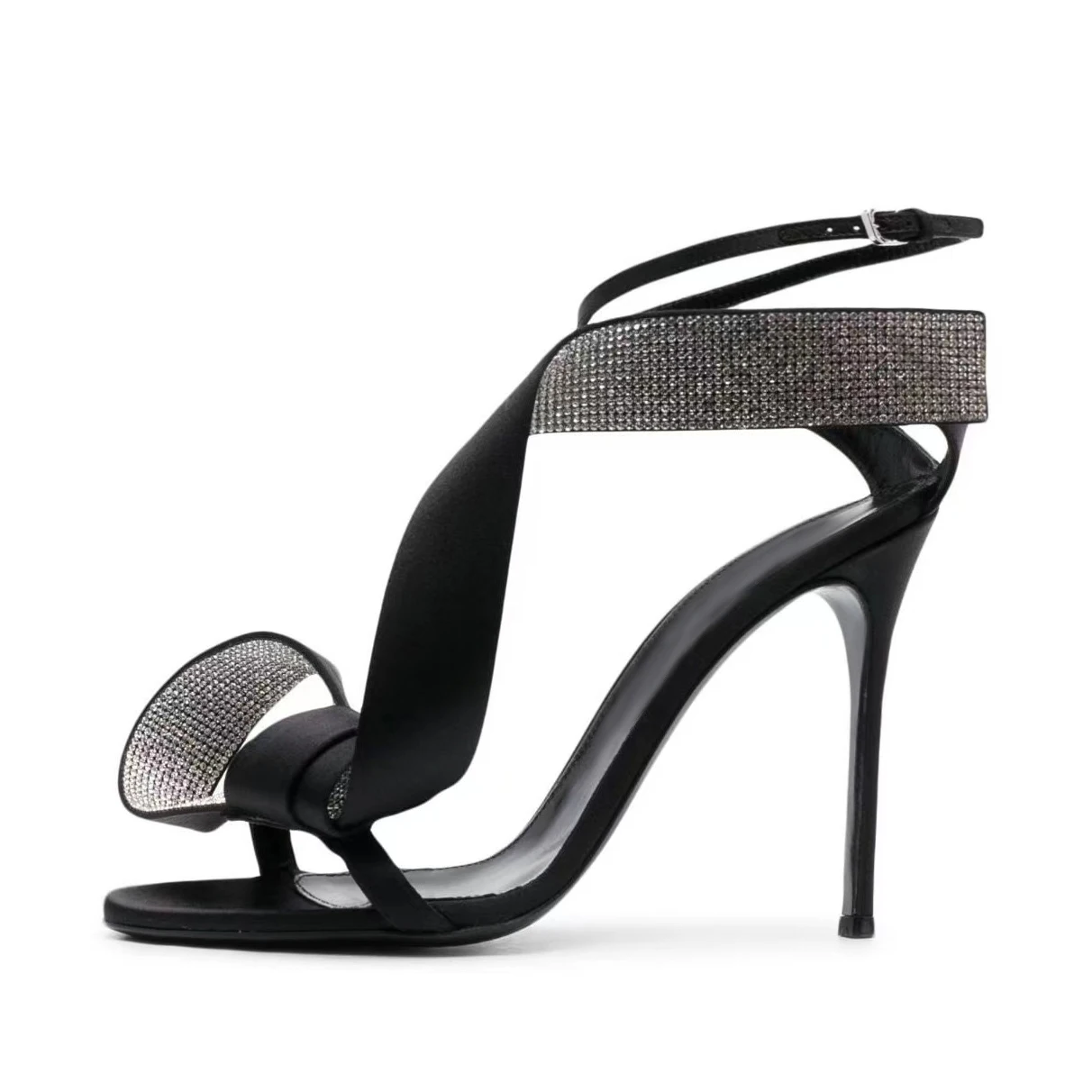 Big Size 45 Wedding Dress Shoes 10.5cm Stiletto Sandals Heels Sexy Prom Rhinestones Bowknot Satin Ladies High Heel Sandals