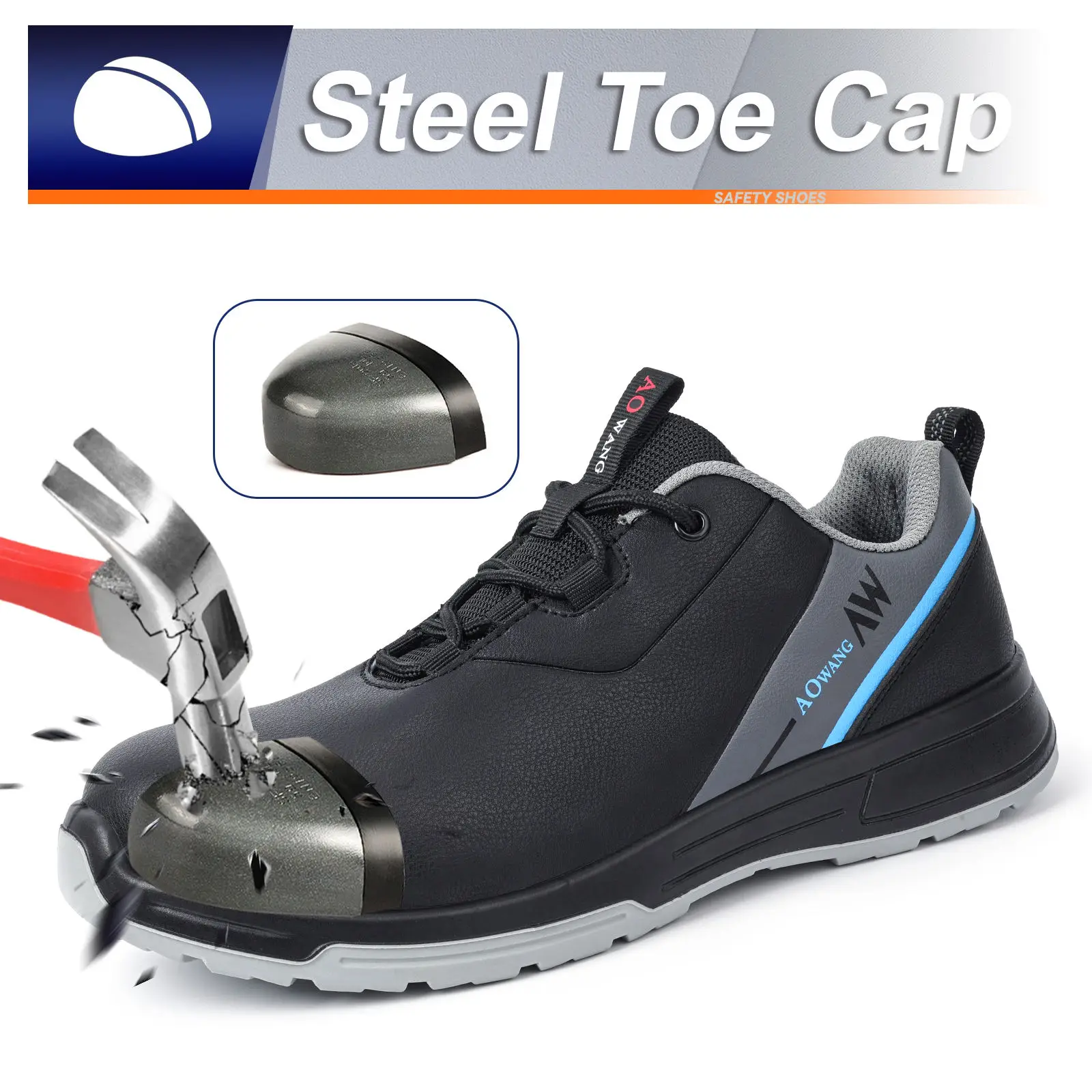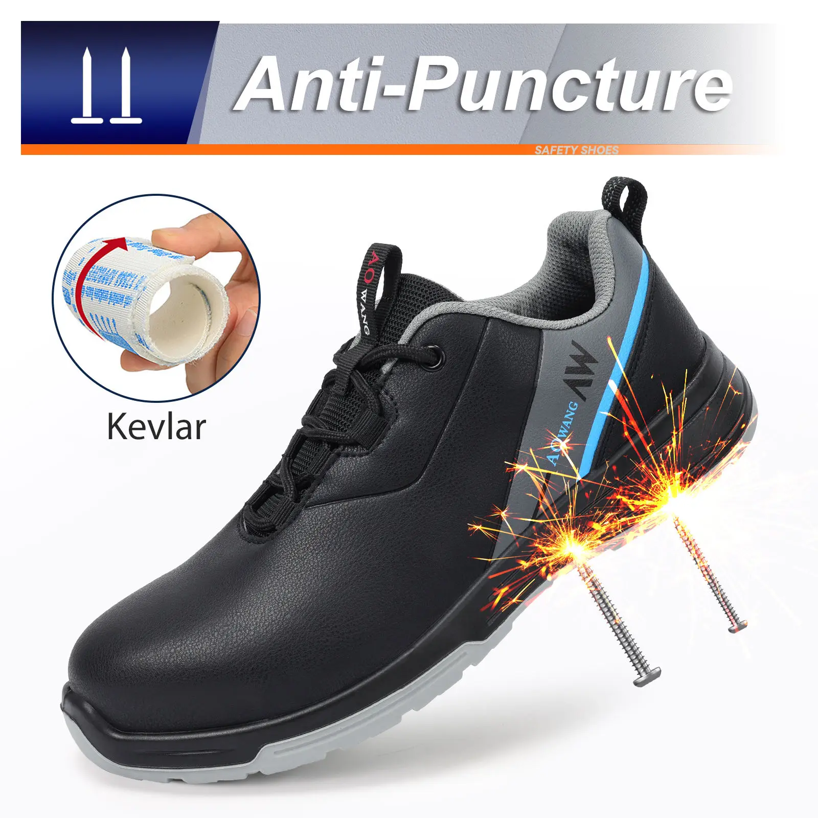 JIANKUN Unisex Fashionable Waterproof Microfiber Leather Anti-slip Anti-Puncture Anti-Smash Steel Toe PU-PU Outsole Safety Shoes