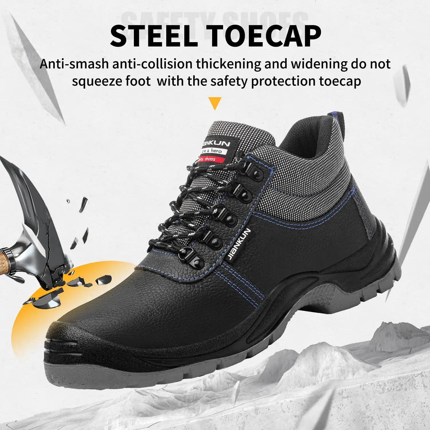 JIANKUN CE Certified Men's Safety Shoes Anti-Smash Steel Toe Puncture Proof Steel Plate Waterproof Microfiber Leather New Blance