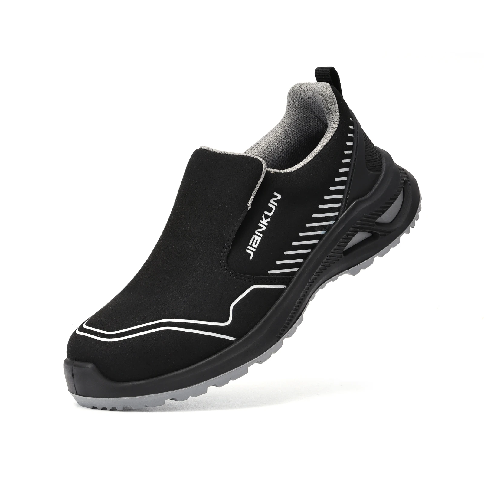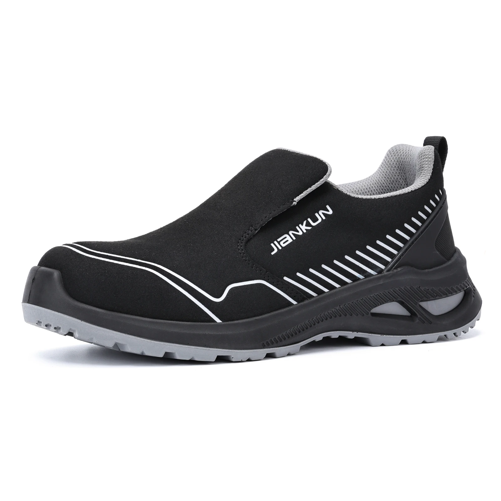 JIANKUN Low Cut Safety Shoes Suede Leather Easy on and Off Steel Toe Anti-puncture Slip Resistant SB P Durable Outsole