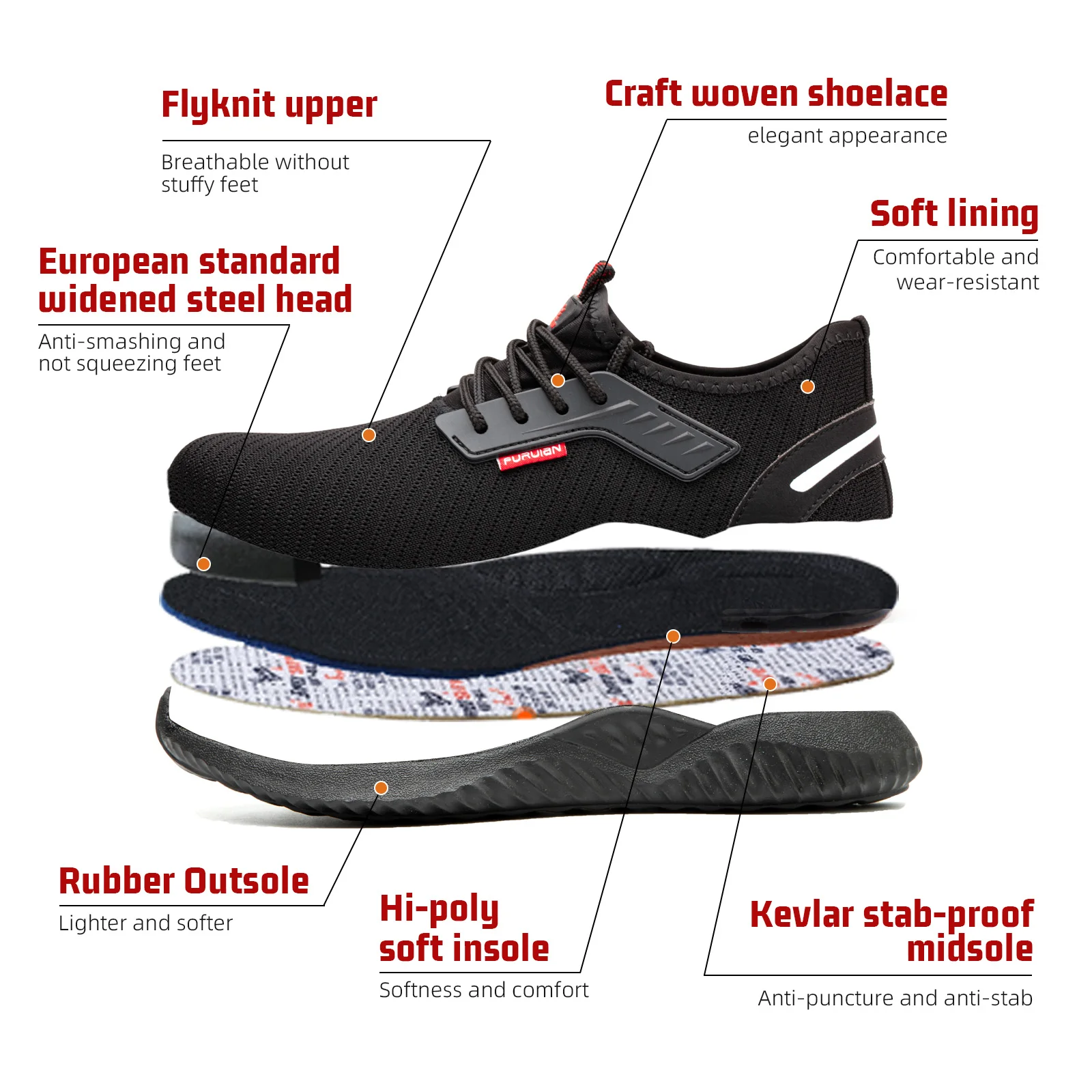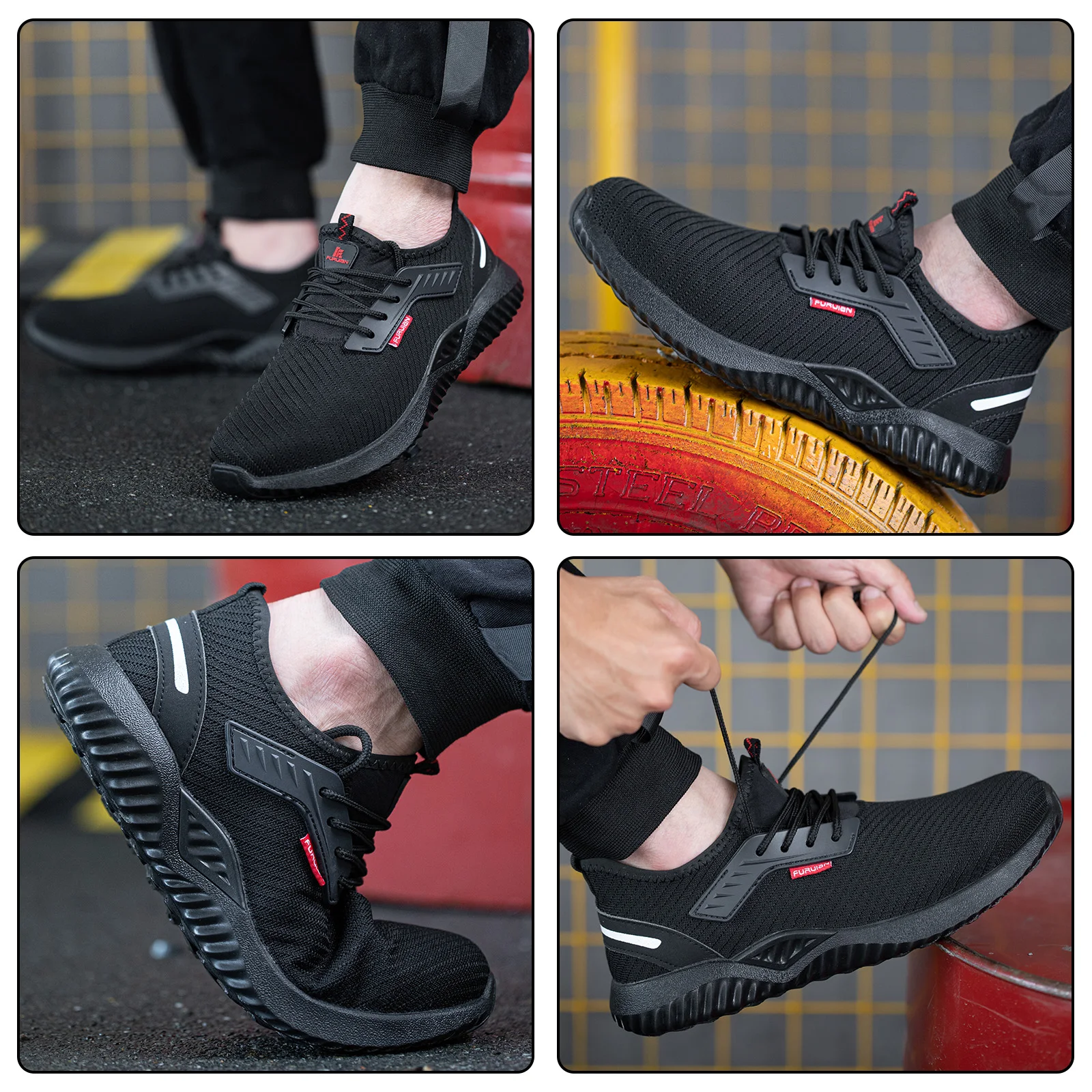 JIANKUN JK-616 EU Standard CE Anti-smashing Anti-puncture Protective Fly Knitting Breathable Rubber Safety Shoes for Men