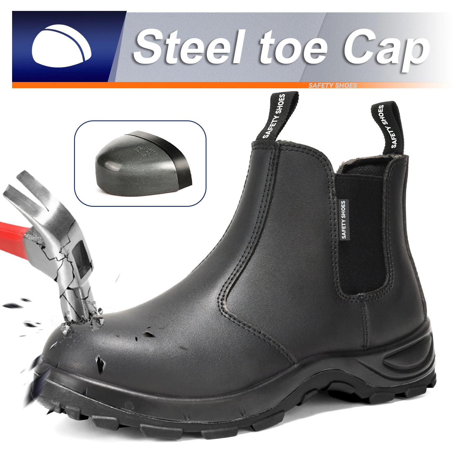 JIANKUN No Shoelace Geniu Leather Anti-Smashing Anti-Puncture Anti-Static Safety Shoes for Men and Women Unisex for Work OEM/ODM