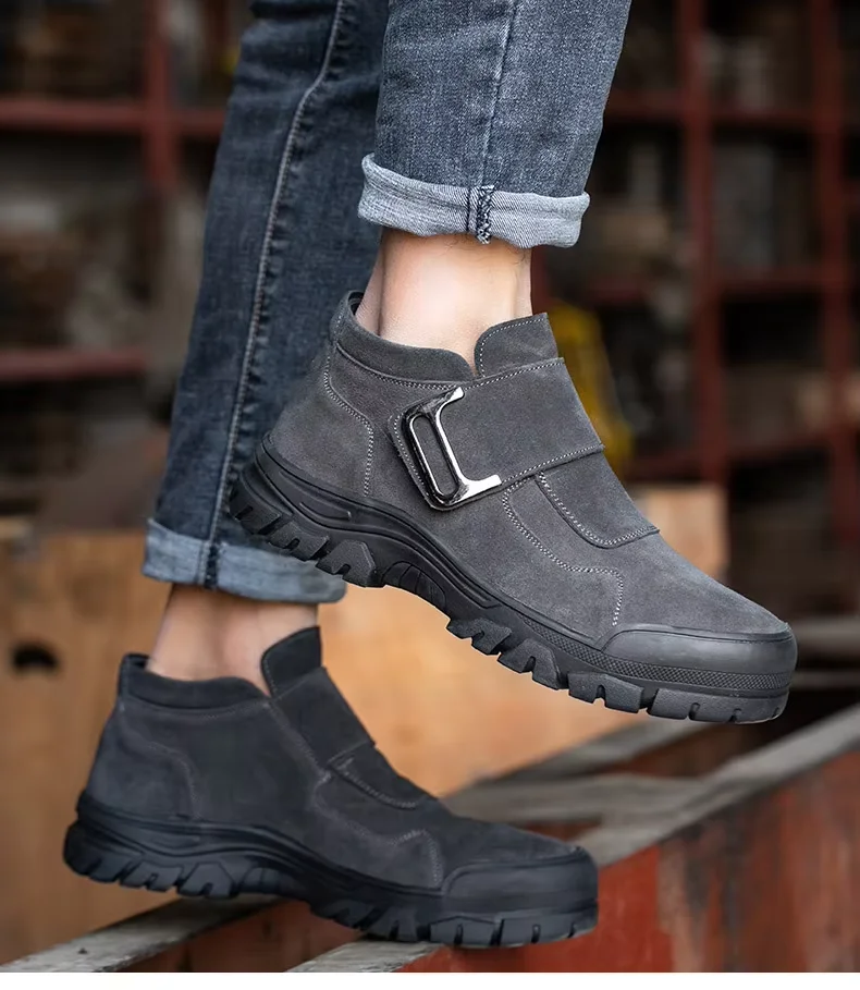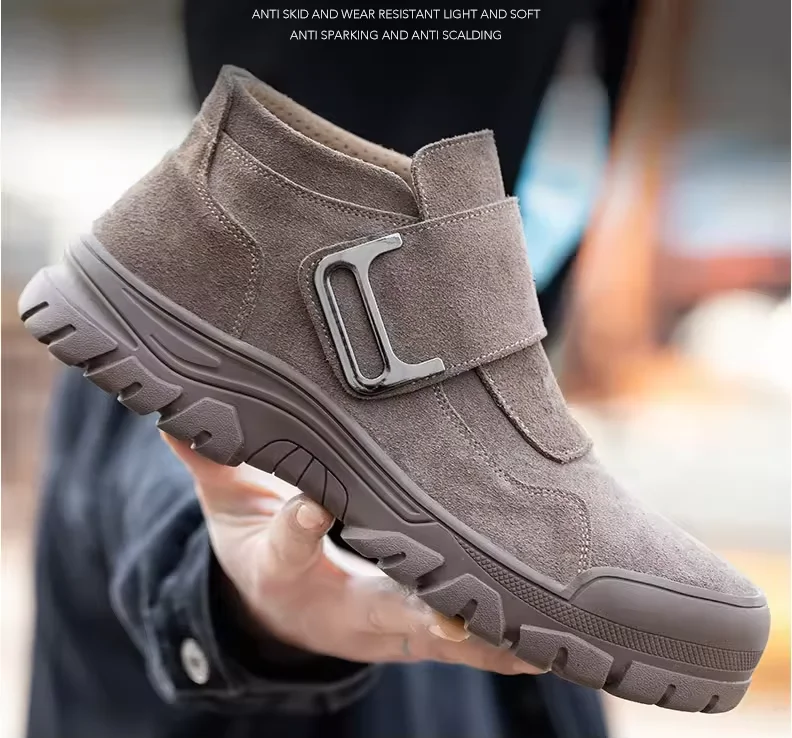 JIANKUN Unisex Summer Suede Welder's Shoes Steel Toe Anti-Smashing Anti-Puncture Soft Safety Work Boots for Winter Spring Autumn