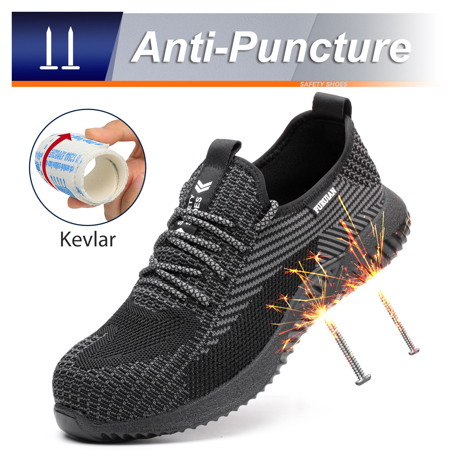 CE SB S1 S2S3 EU Standard Flying Knit Waterproof Breathable Steel Toe Cap Safety Shoes Rubber Footwear for Industry Construction