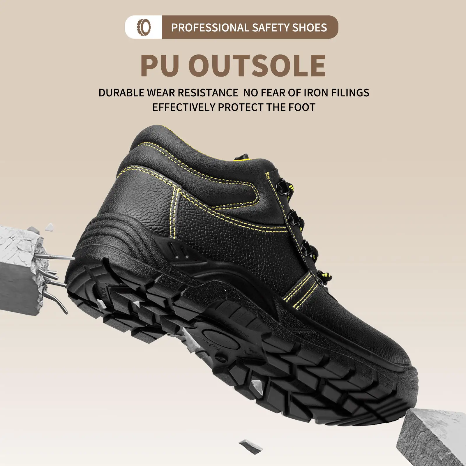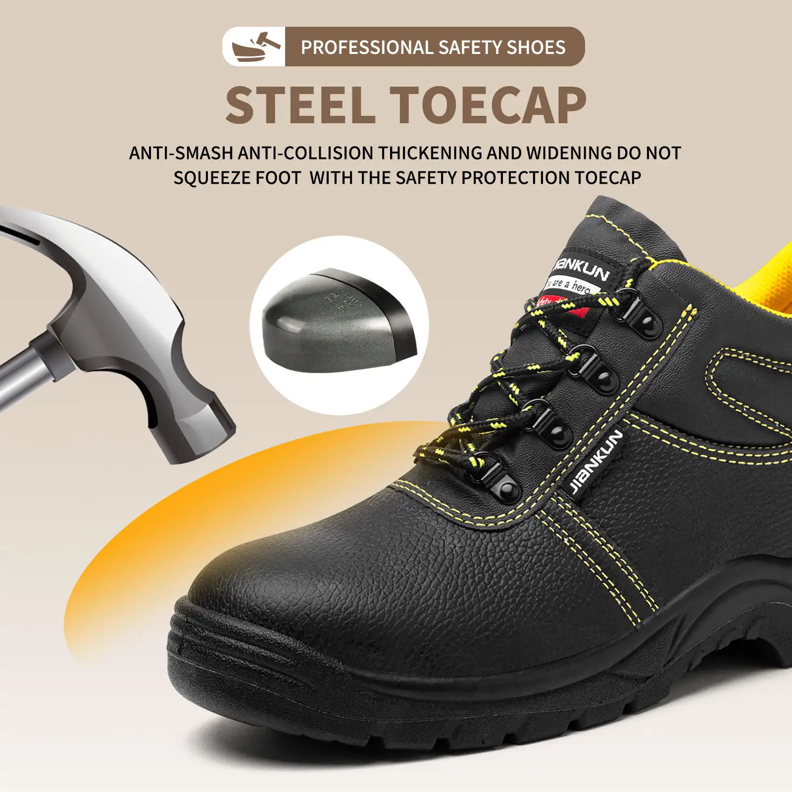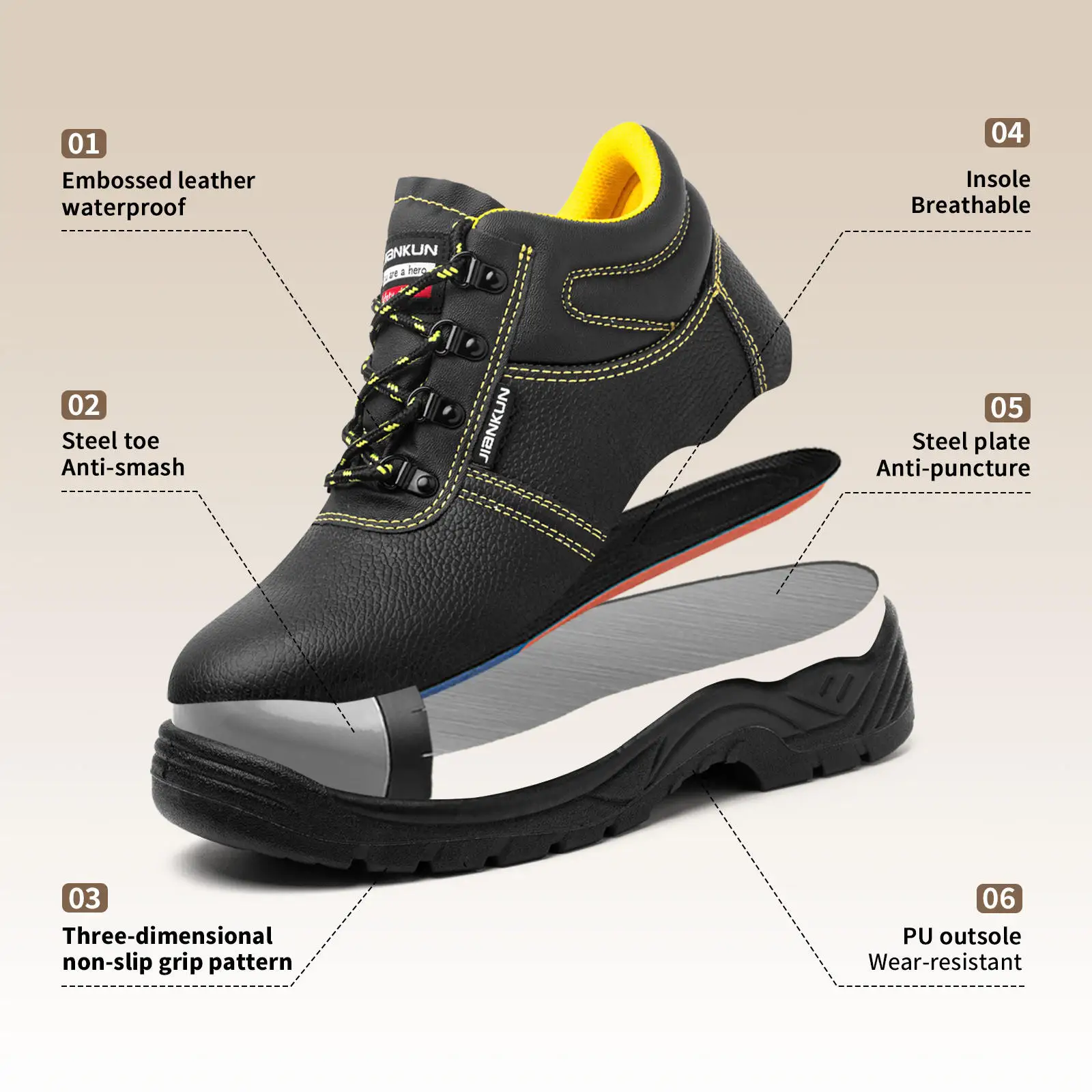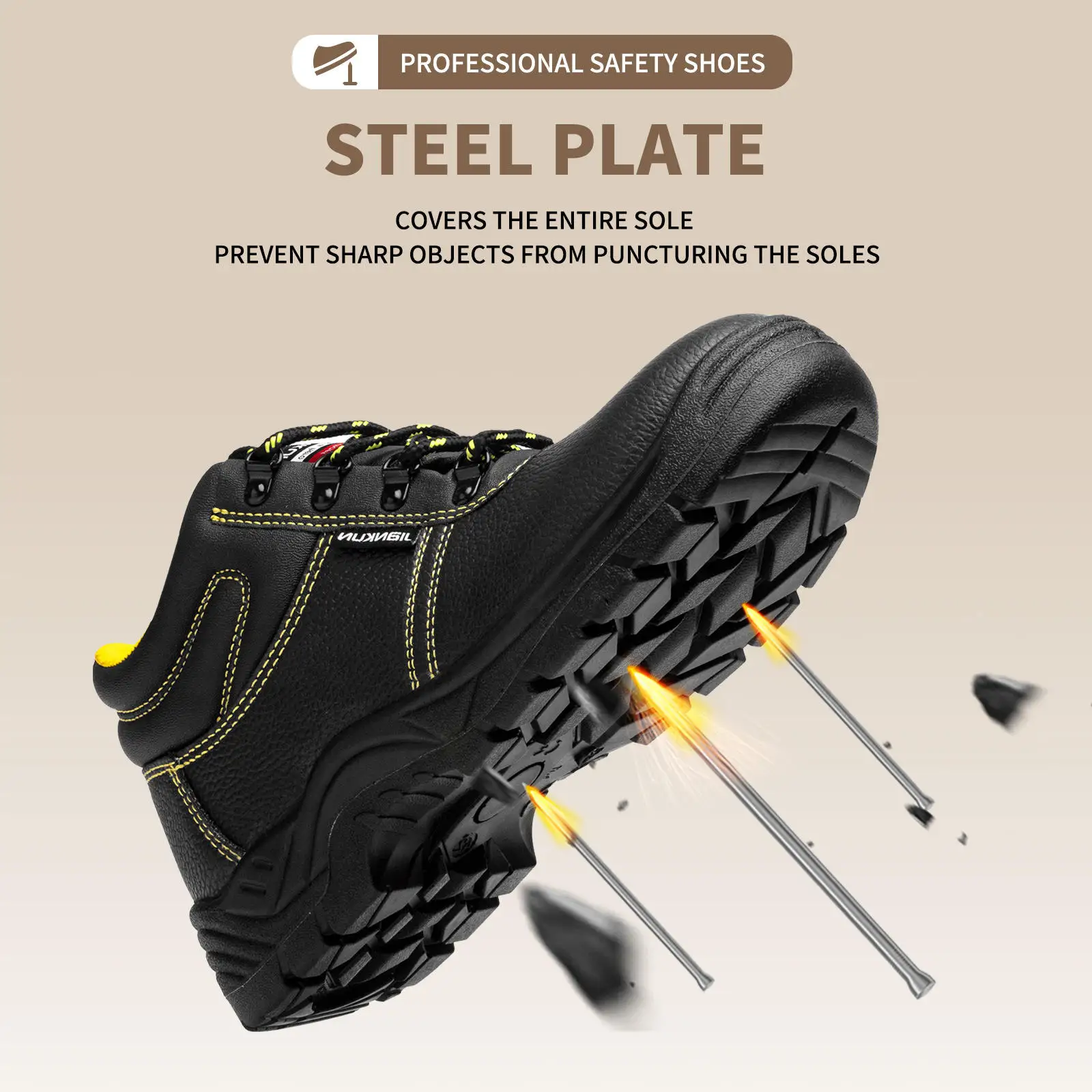 JIANKUN Men's Safety Shoes Anti-Puncture Steel Plate Embossed Cow Leather Waterproof Anti-Smash Steel Toe Breathable Mesh Winter