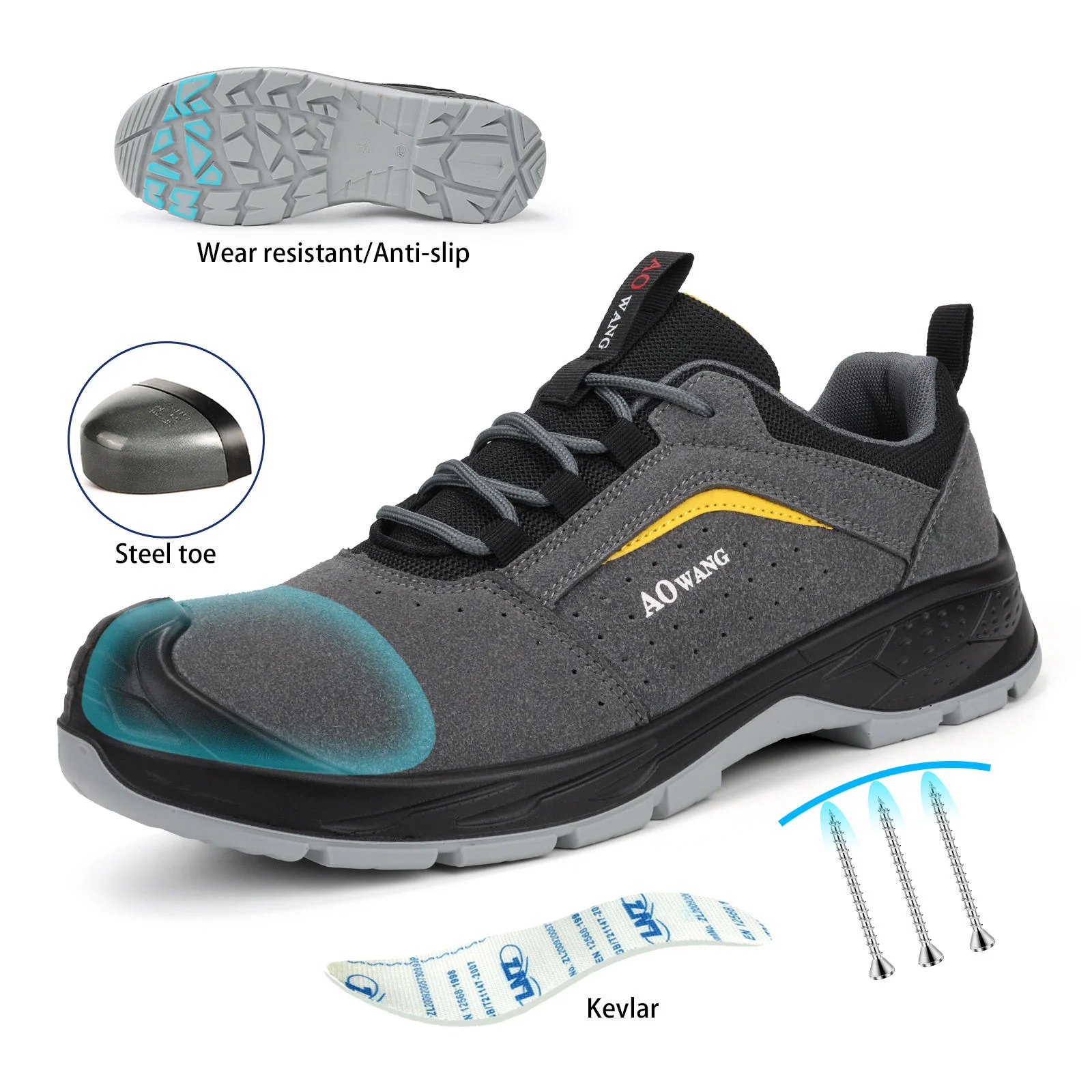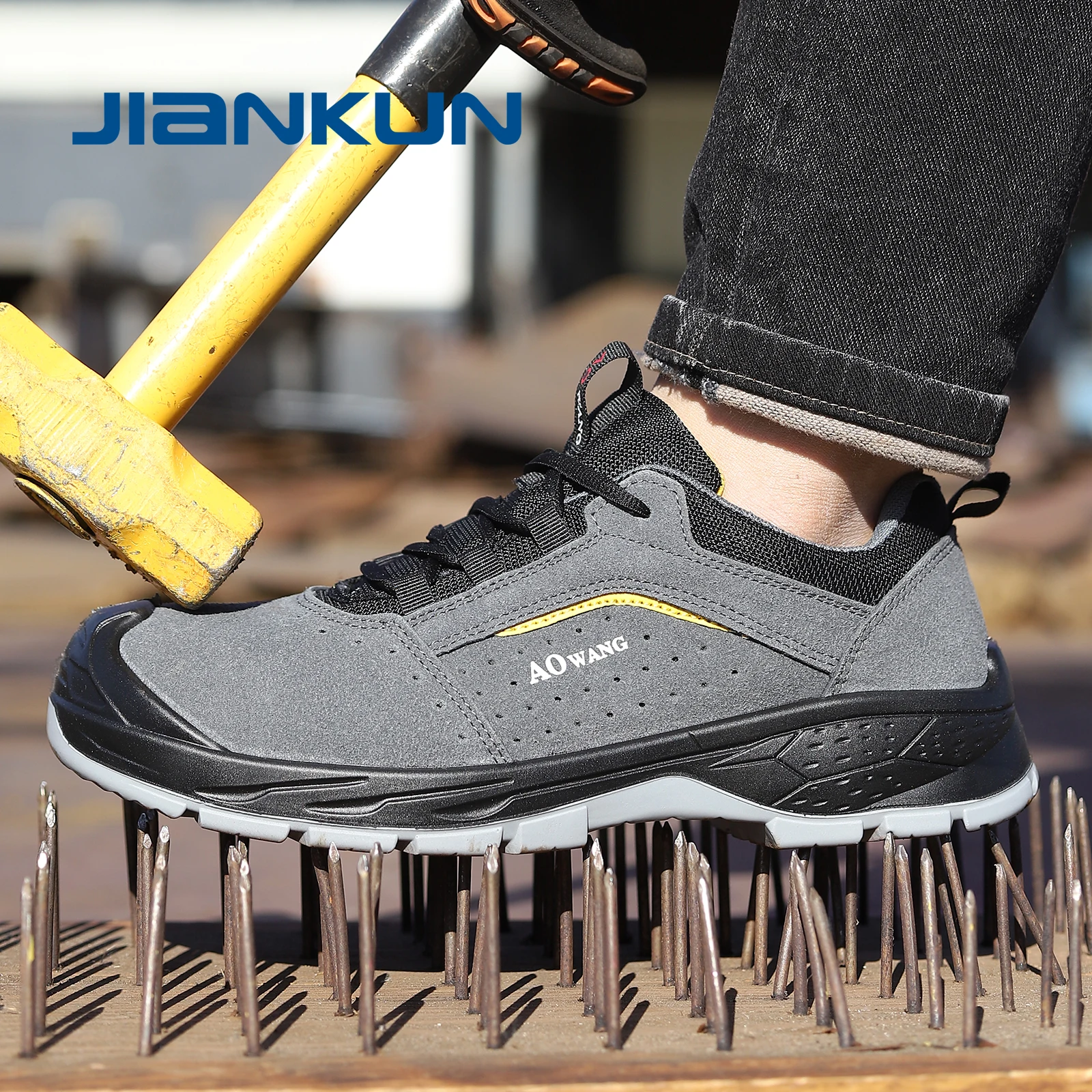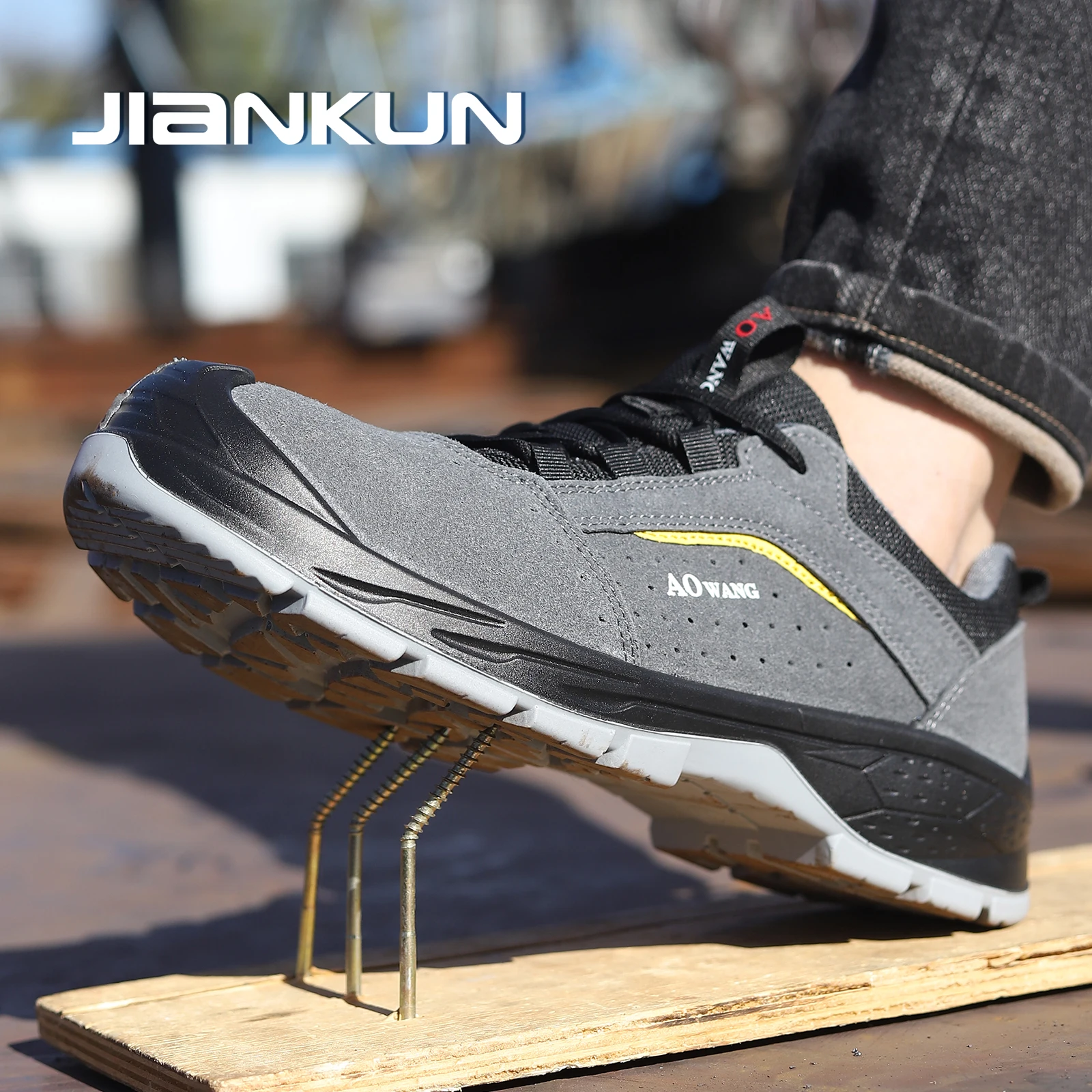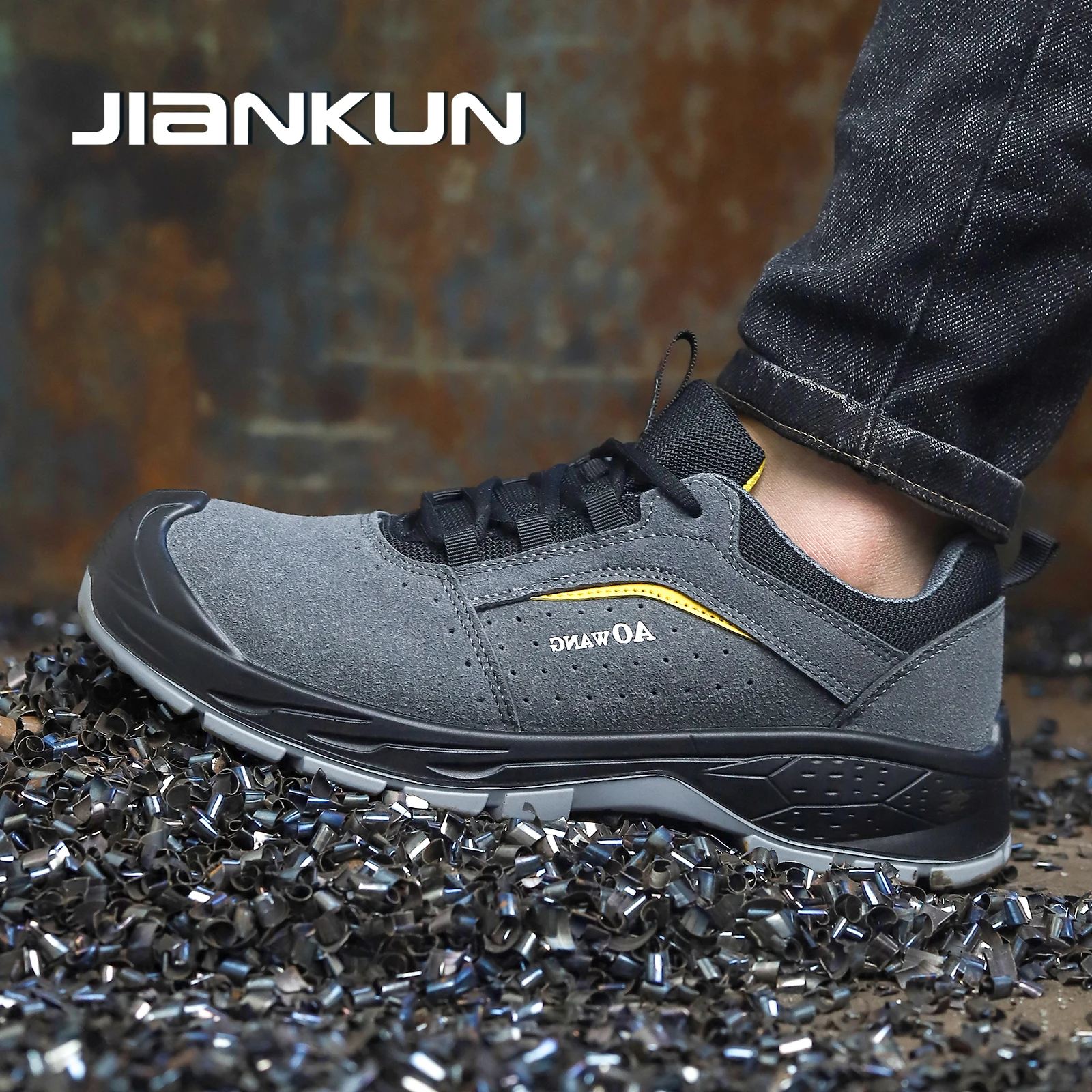 JIANKUN Factory Direct Men's High Quality Suede Cow Leather Work Safety Shoes Anti-Smash/Puncture Steel Toe Safety Shoes for Men