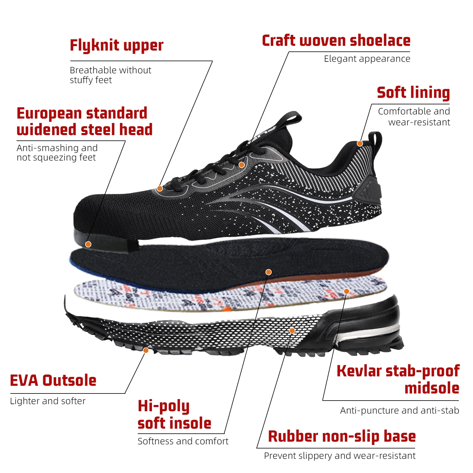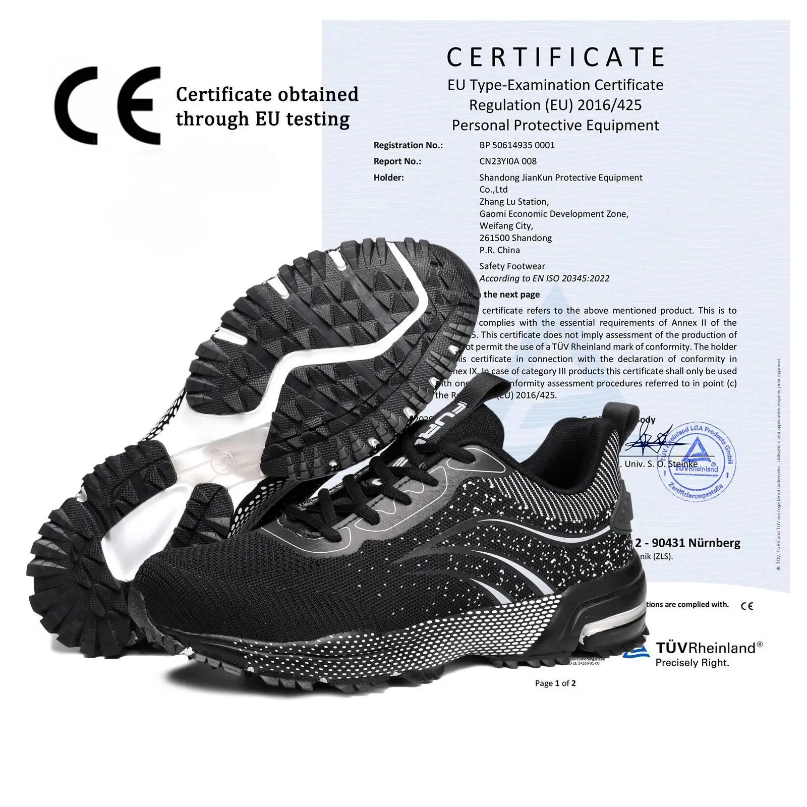 JIANKUN CE Flying Knit Steel Toe Anti Impact Anti Puncture Anti Static Mining Industrial Construction Safety Shoes for Men