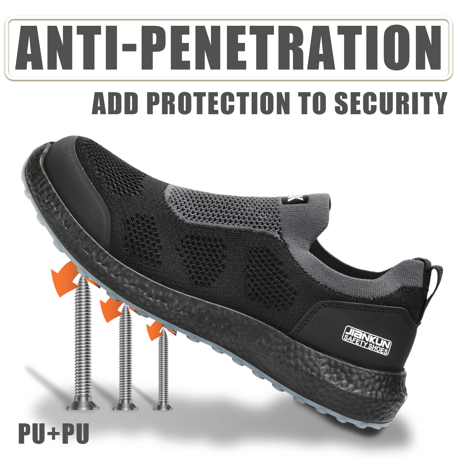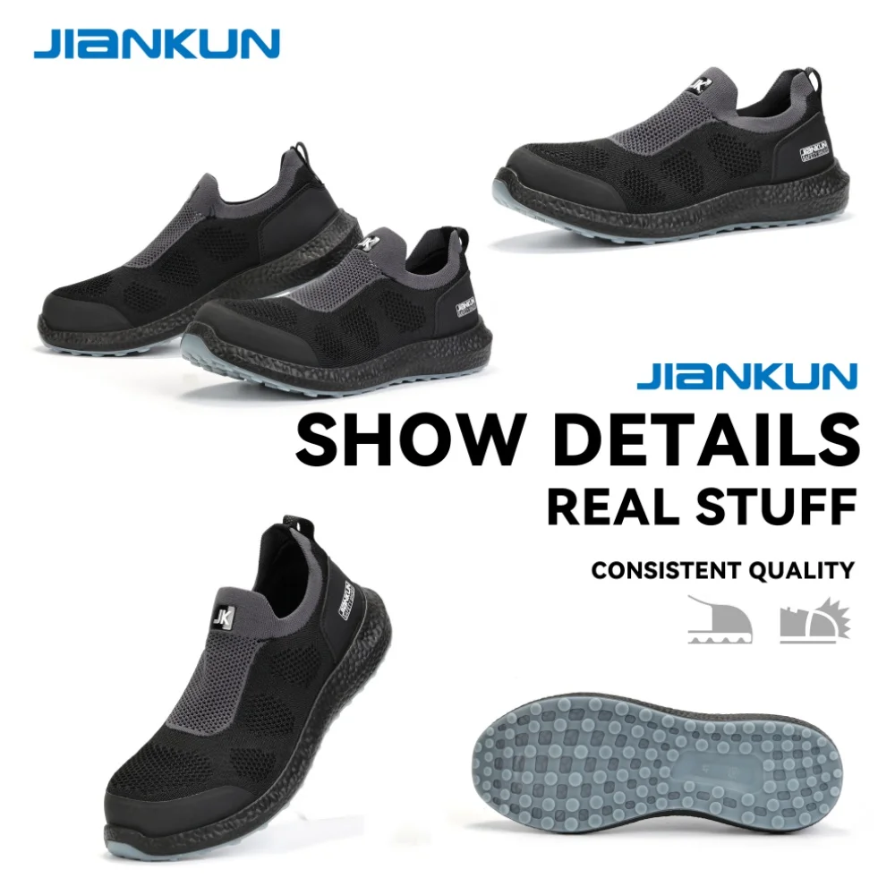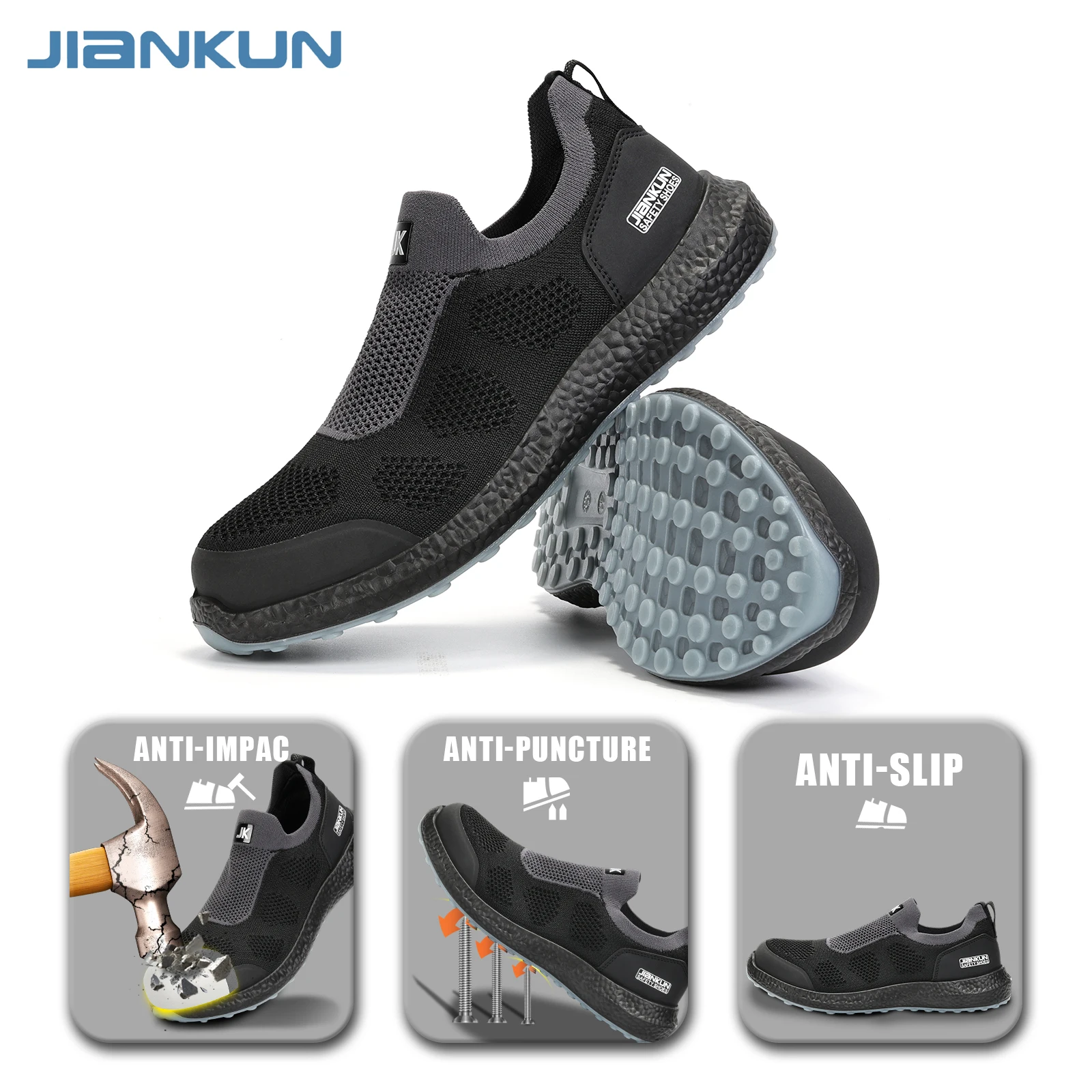 JIANKUN Unisex Sports New Style Comfortable Flying Knit Safety Shoes Supper Non-Slip PU+PU Sole Anti-Smash/Puncture Plastic Toe
