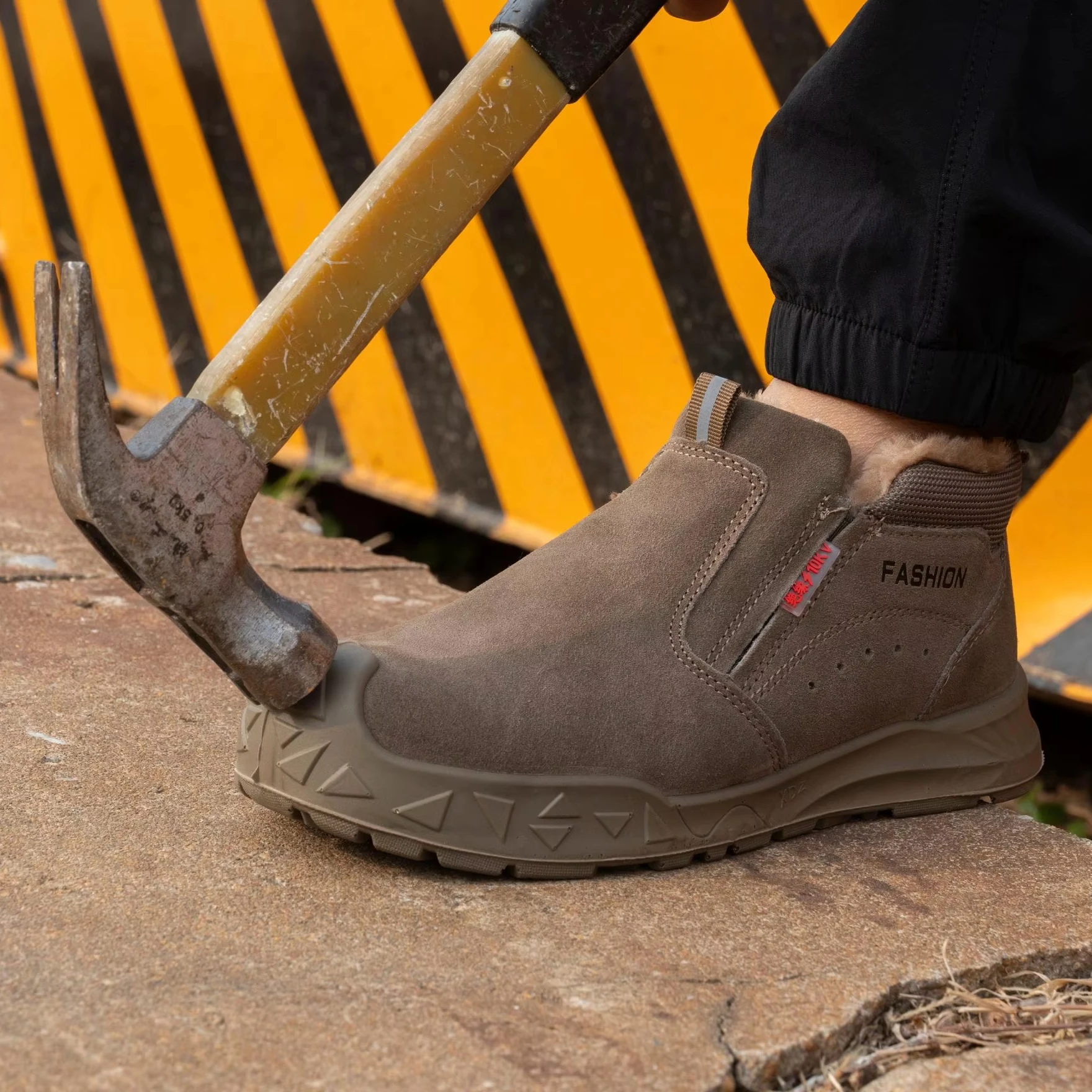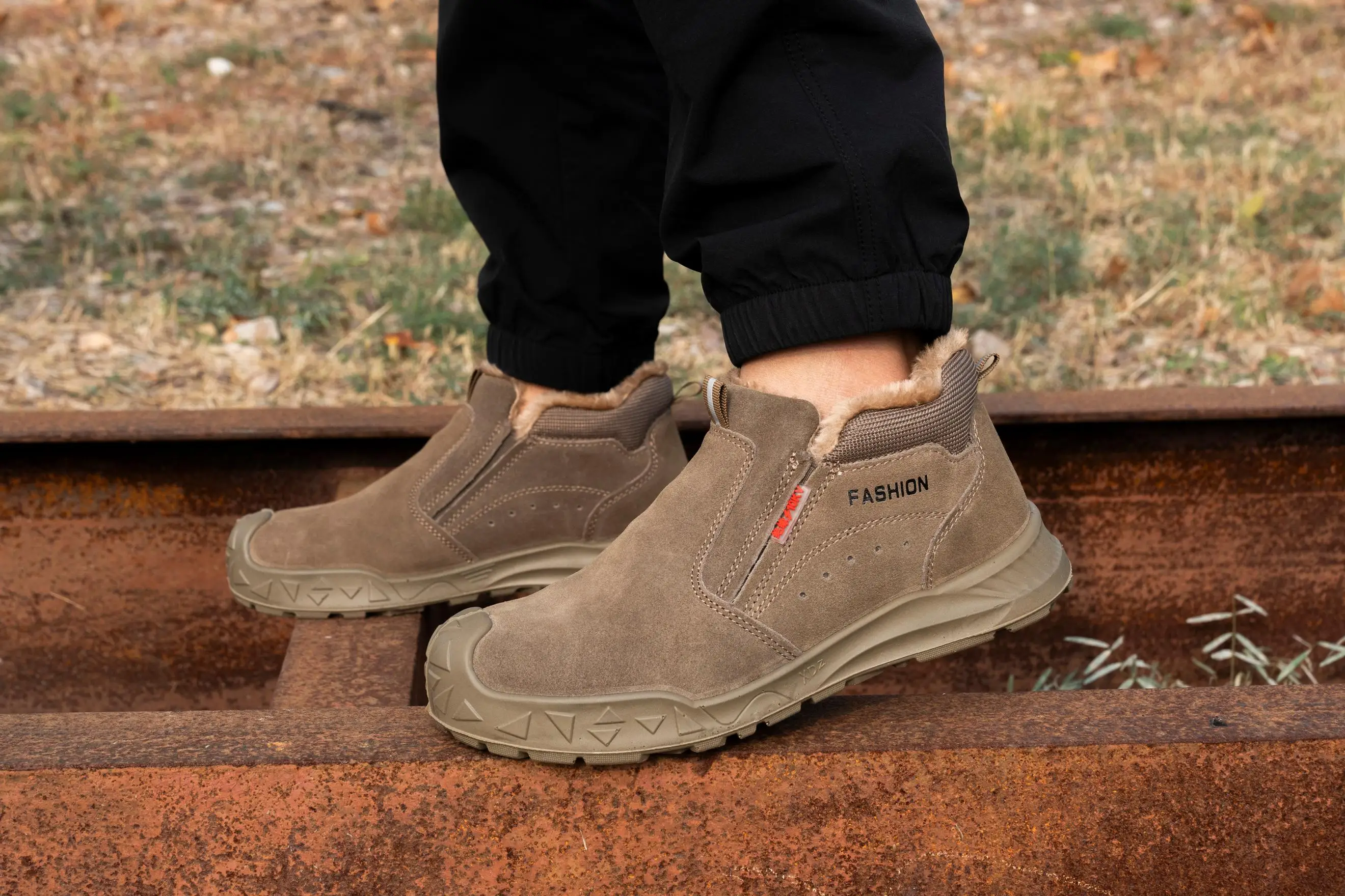 Factory Direct Winter Protective Warm Snow Safety Shoes Work Boots for Men No Shoelace Anti-Smash/Puncture Iron Toe PU Outsole