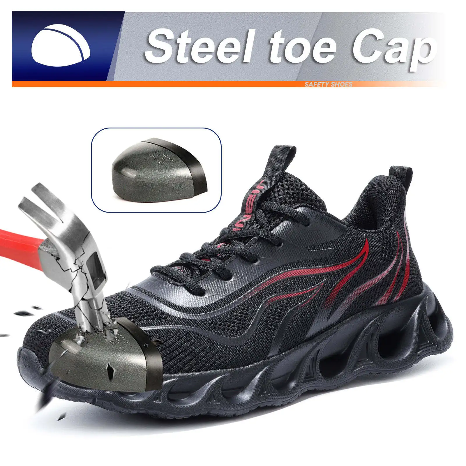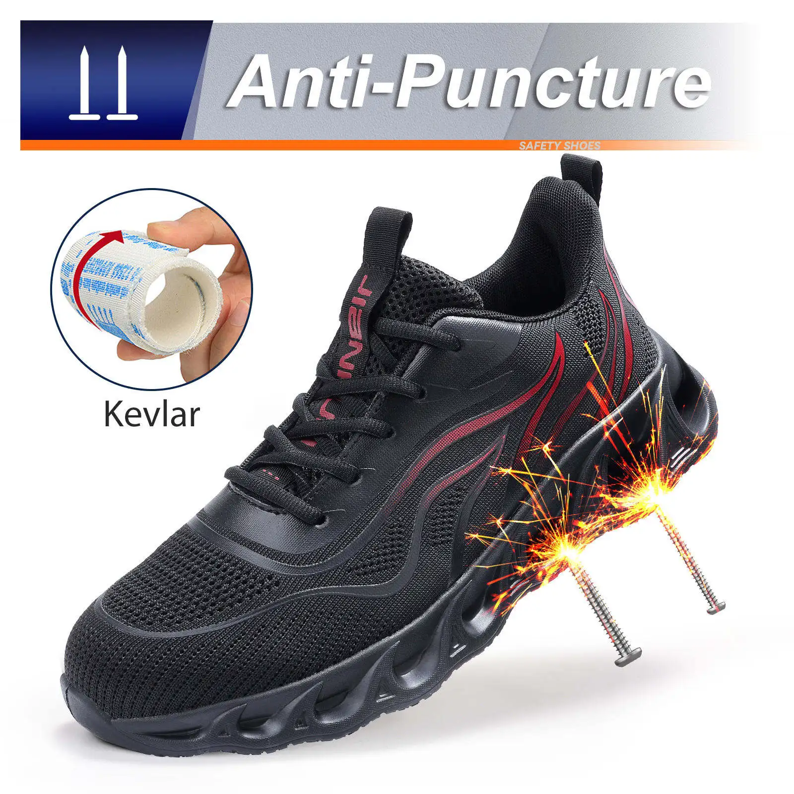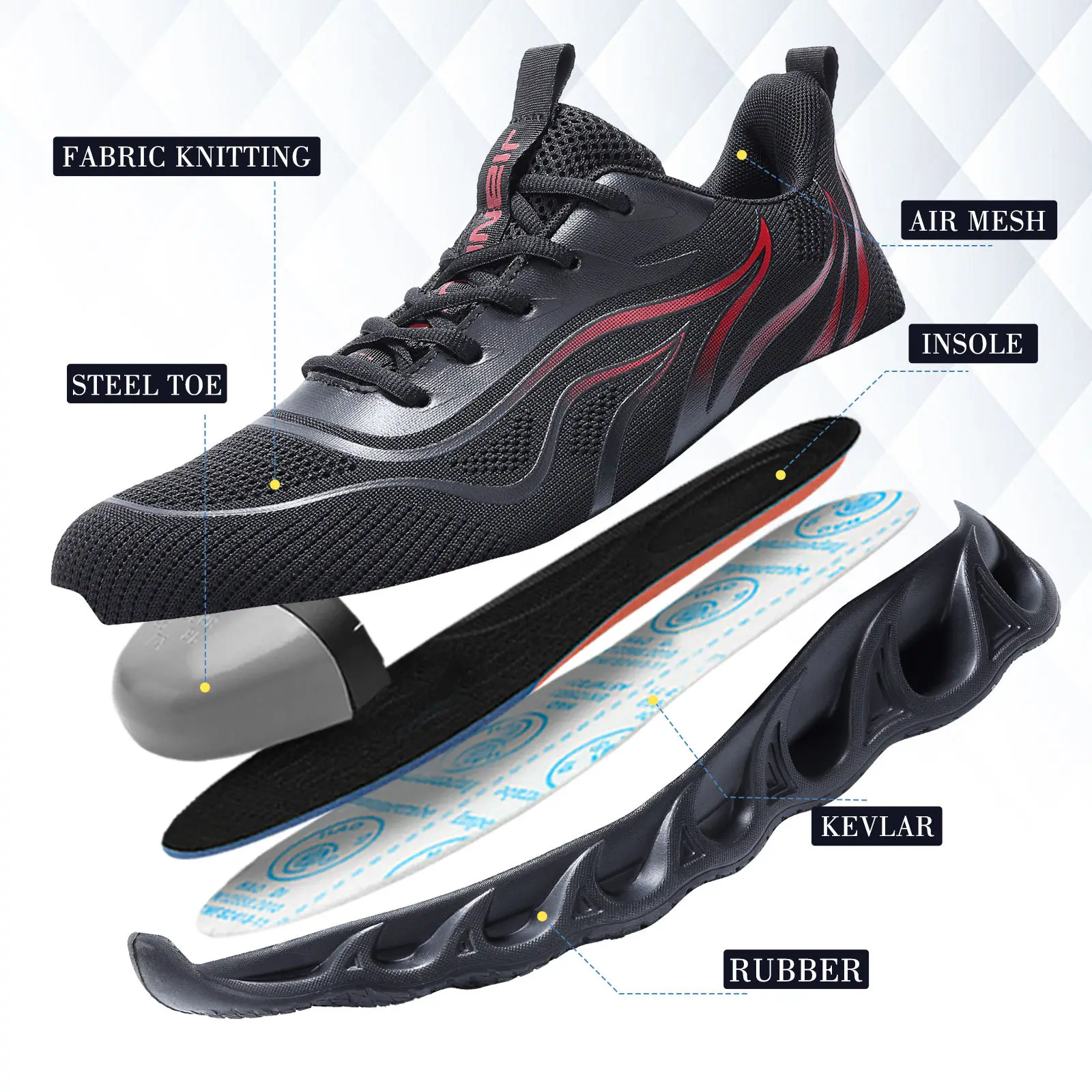 JIANKUN Lightweight Safety Shoes Steel Toe for Men Anti-Smash Anti-Puncture Midsole Comfortable Forming Non-Slip Rubber Outsole