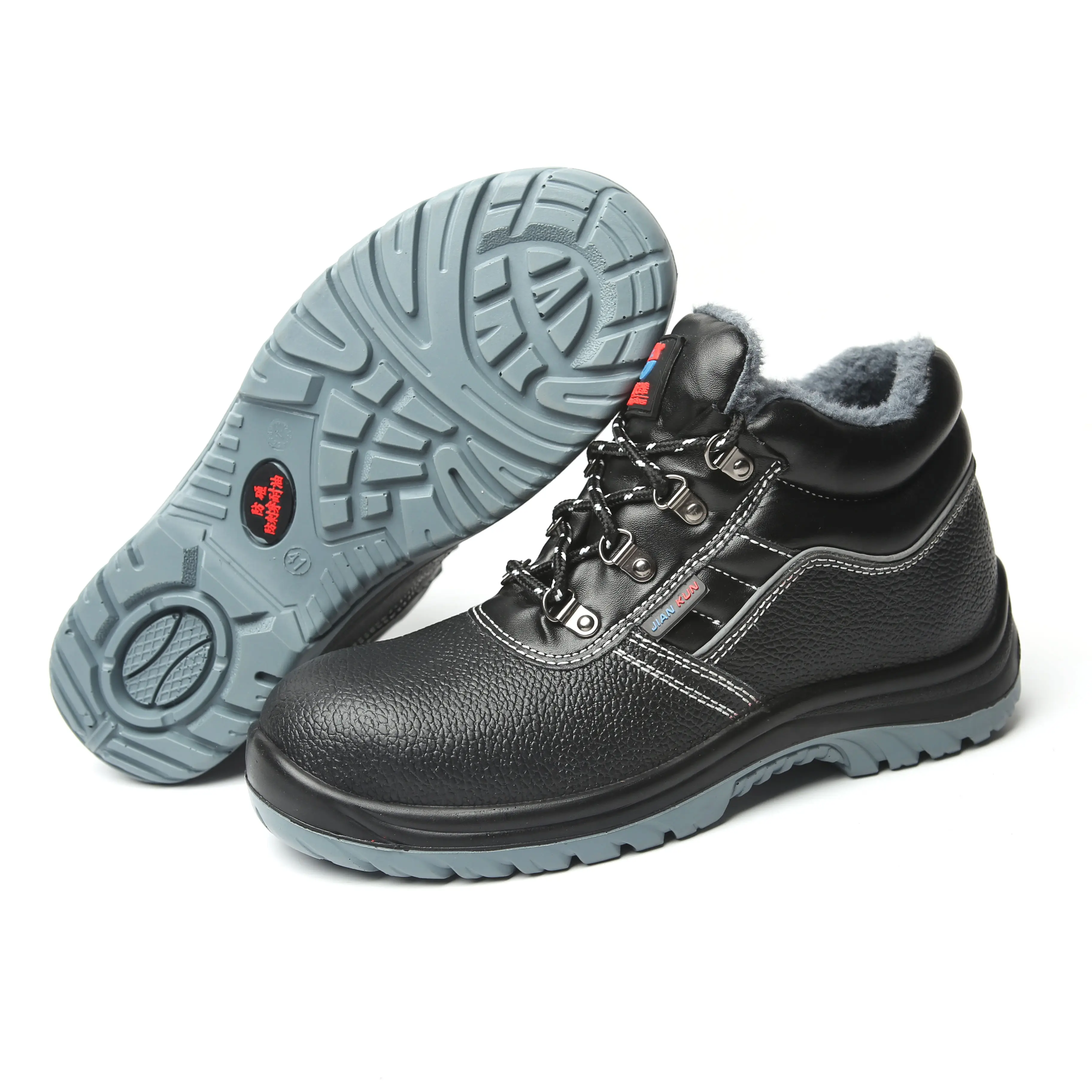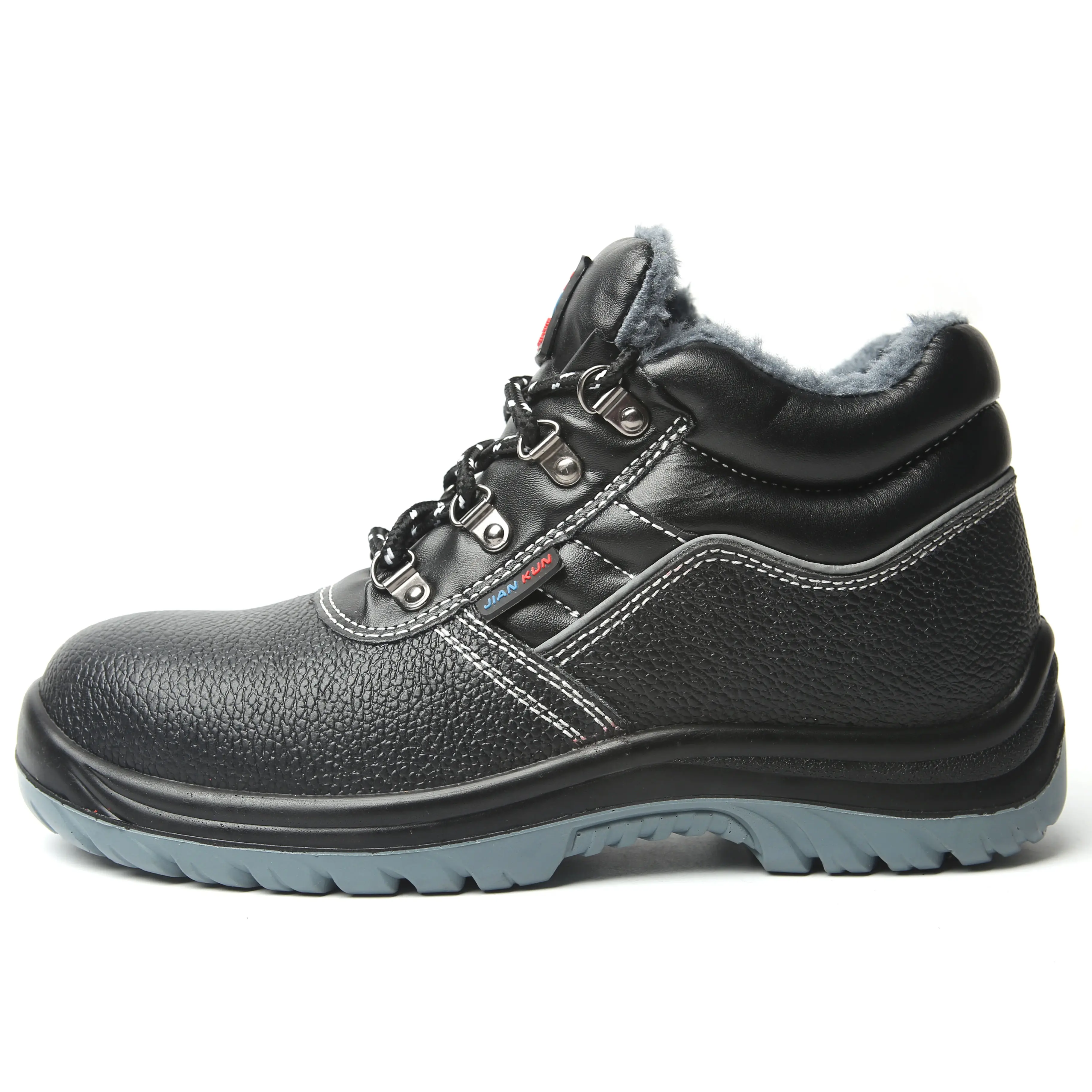 JIANKUN Safety Shoes Unisex Waterproof Mid Cut Embossed Cow Leather Non-Slip PU Steel Toe Anti-Smash Winter Factory Outdoor