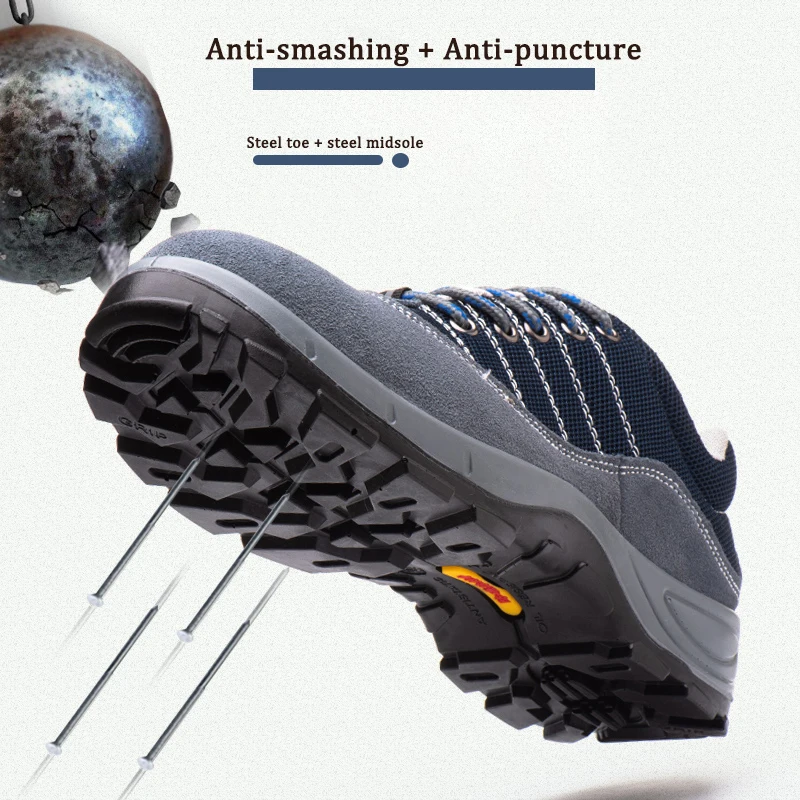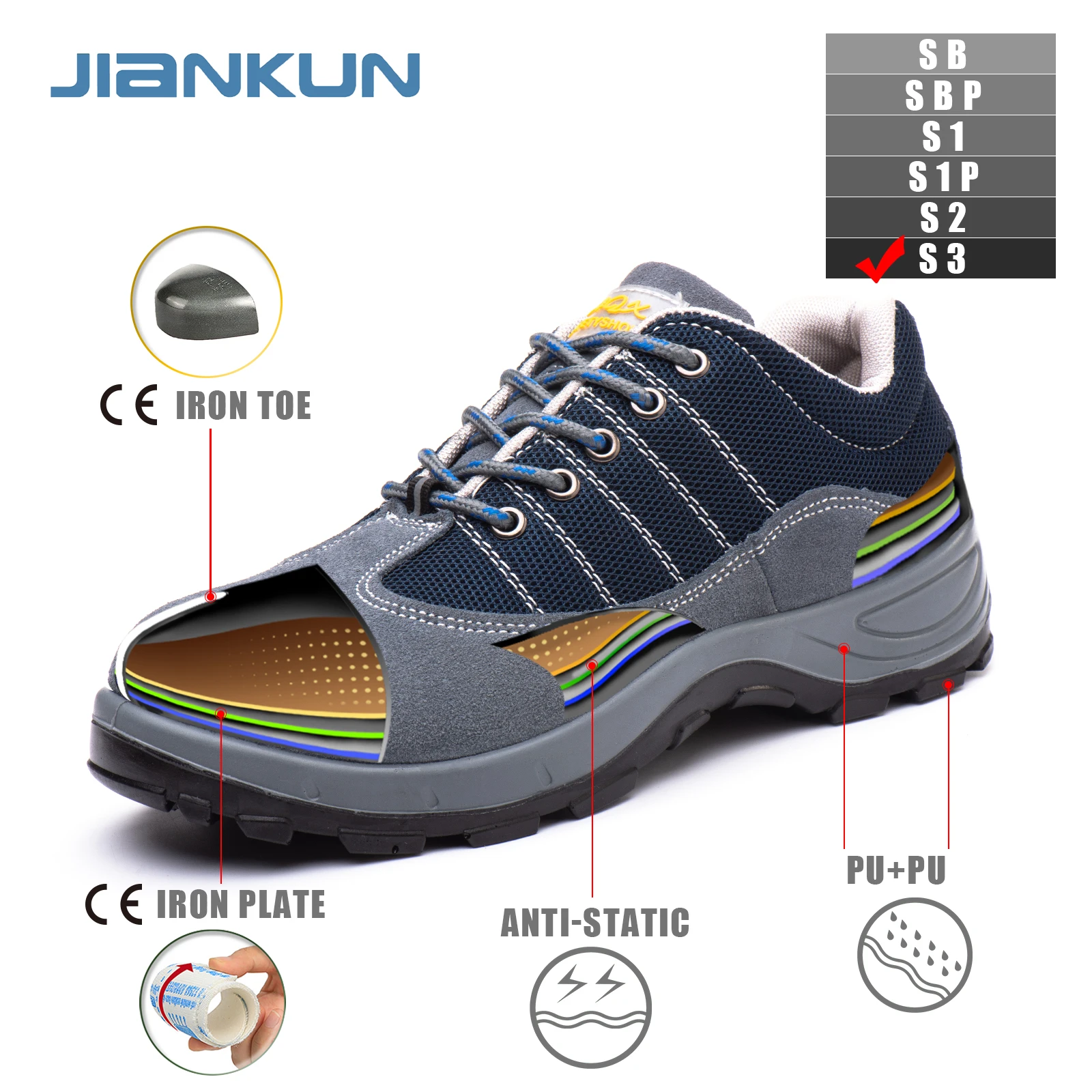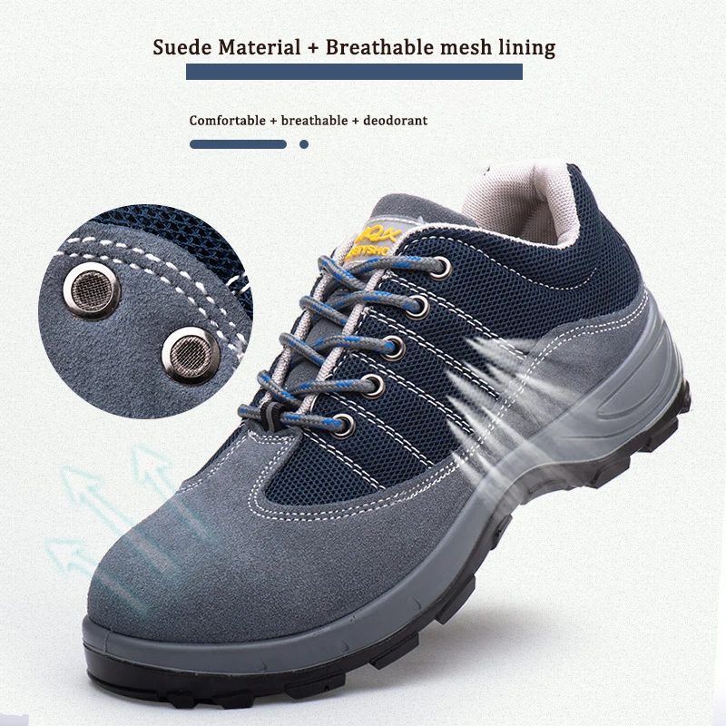 JIANKUN Fashion Unisex Low-Cost Safety Shoes for Men Women Anti-Smash Steel Toe Soft Suede Leather Upper All Seasons Work Shoes