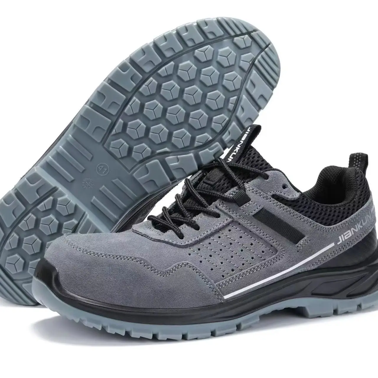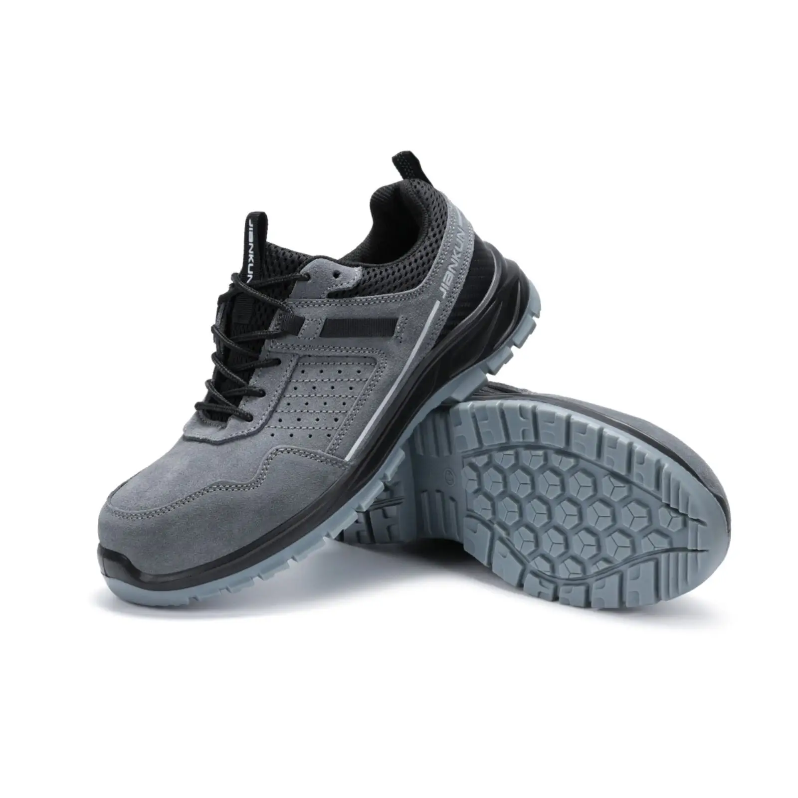 JIANKUN Suede Cow Leather Anti-Smash/Puncture Anti-Static 6KV Safety Shoes with Composite Toe for Men Women Welders Work Boots
