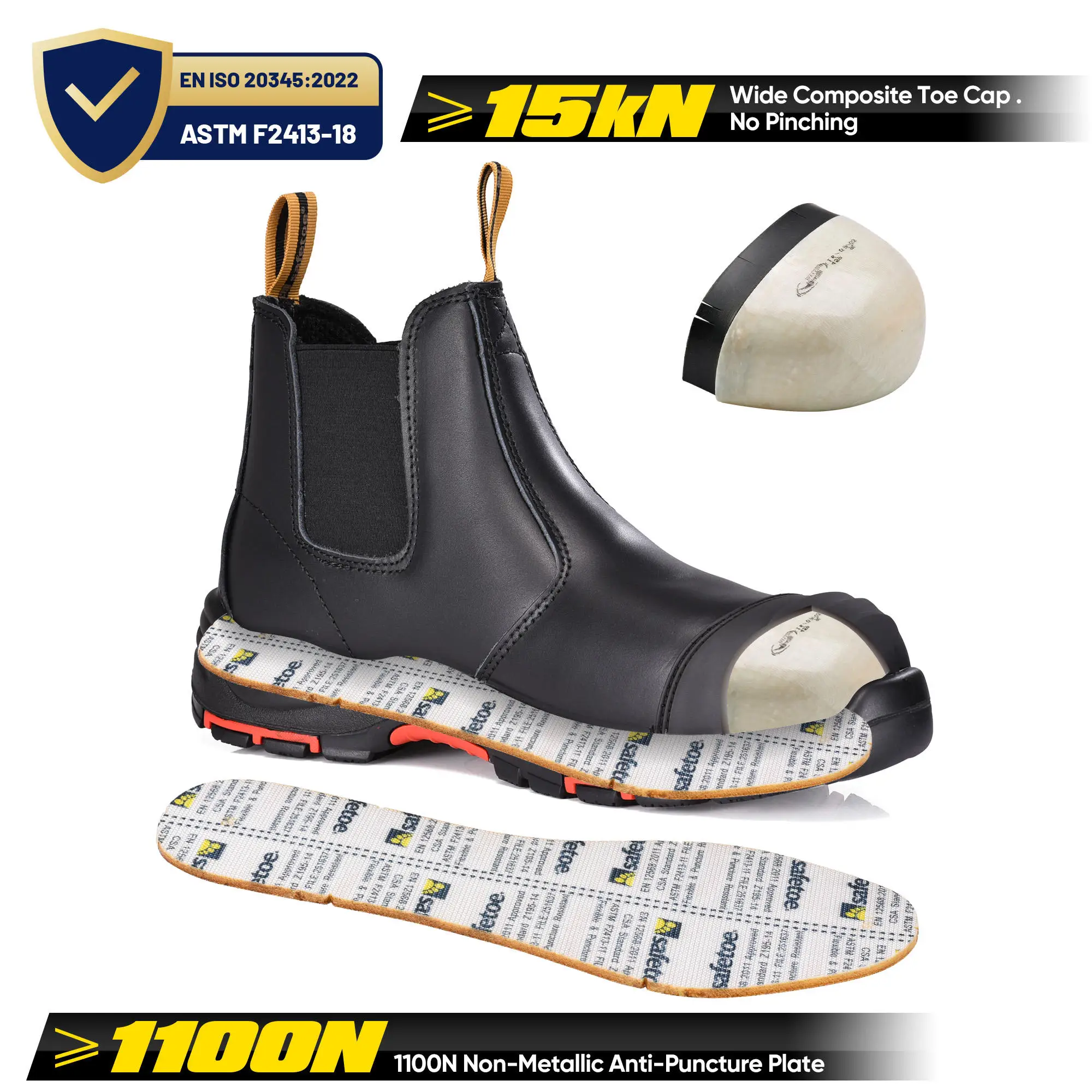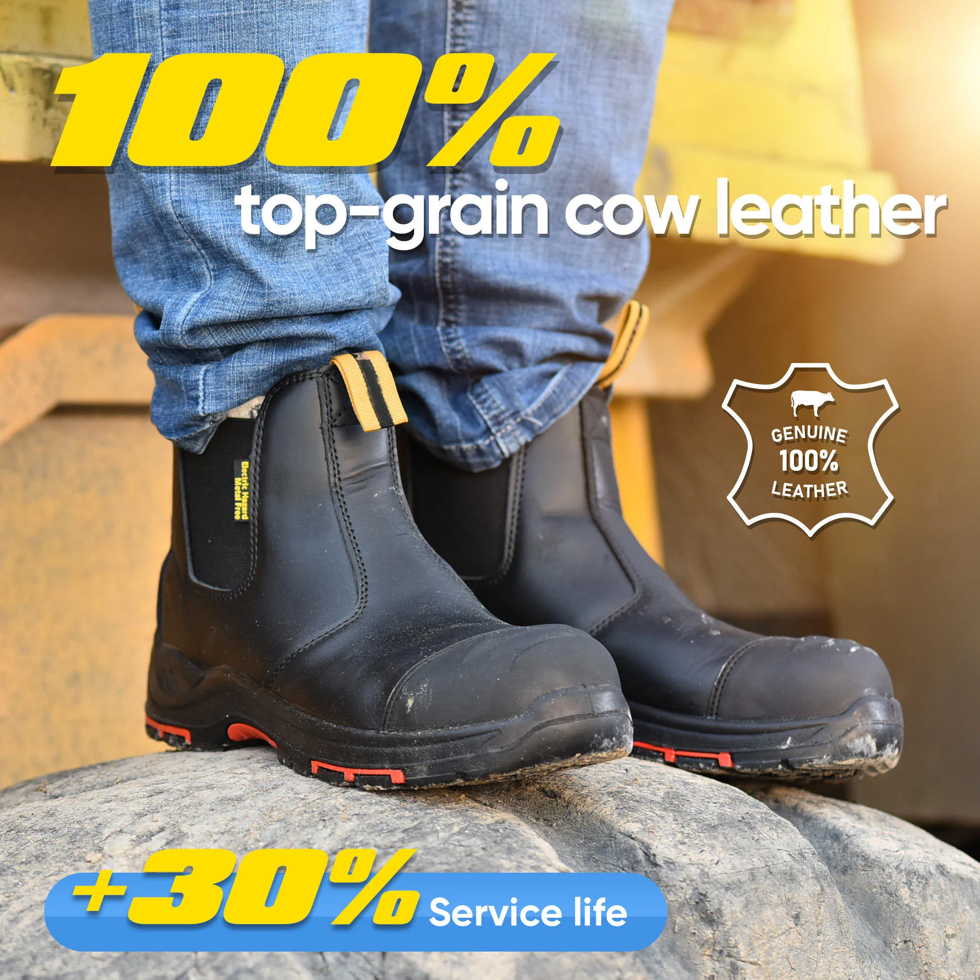 JIANKUN Slip-On Chelsea Mining Work Boots | EN ISO 20345 S3 / ASTM Electric 18kV | Slip Resistant