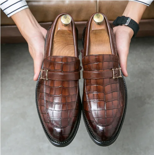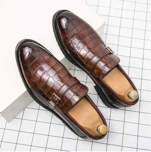 Plus Size Luxury Autumn Trendy Men's Business Slip-on Loafers Korean British Buckle Pointed Toe Breathable PU Dress Shoes