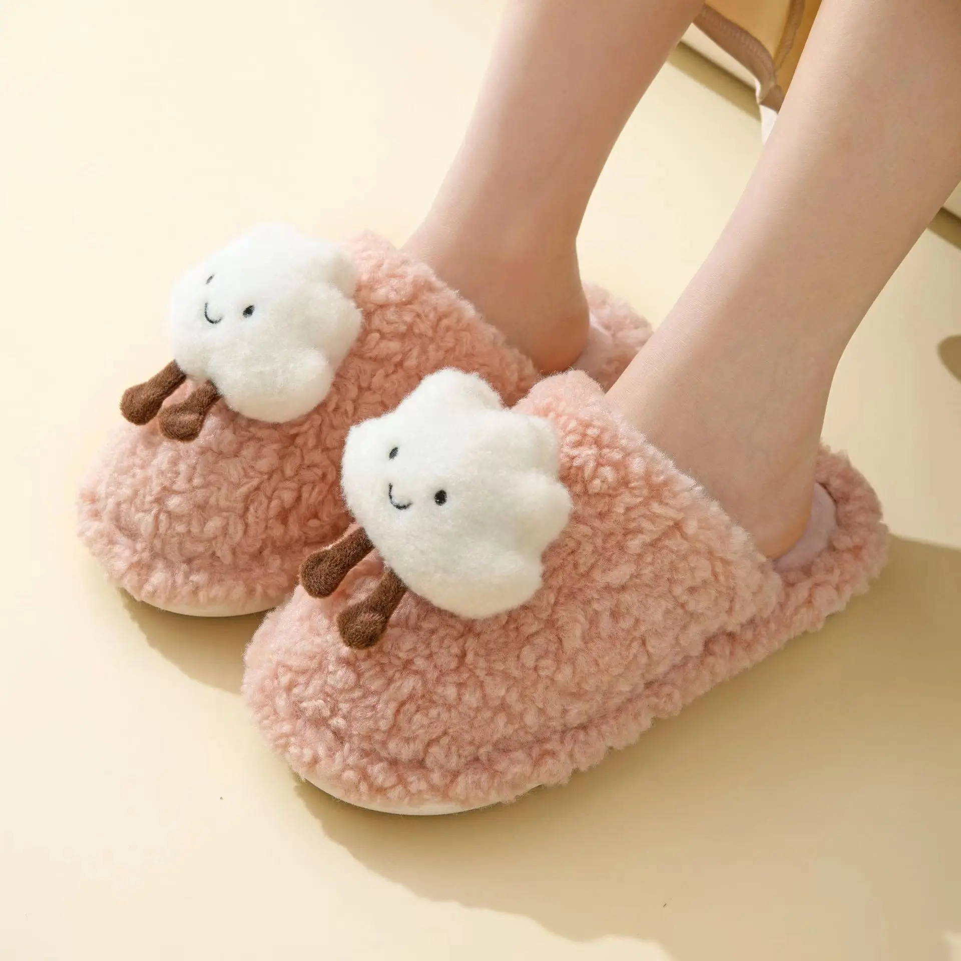 Women's Beautiful Rabbit Hair Flip-Flops for Slippers Light Weight Cushioned Spring Fashion Trend Slip-Resistant Design