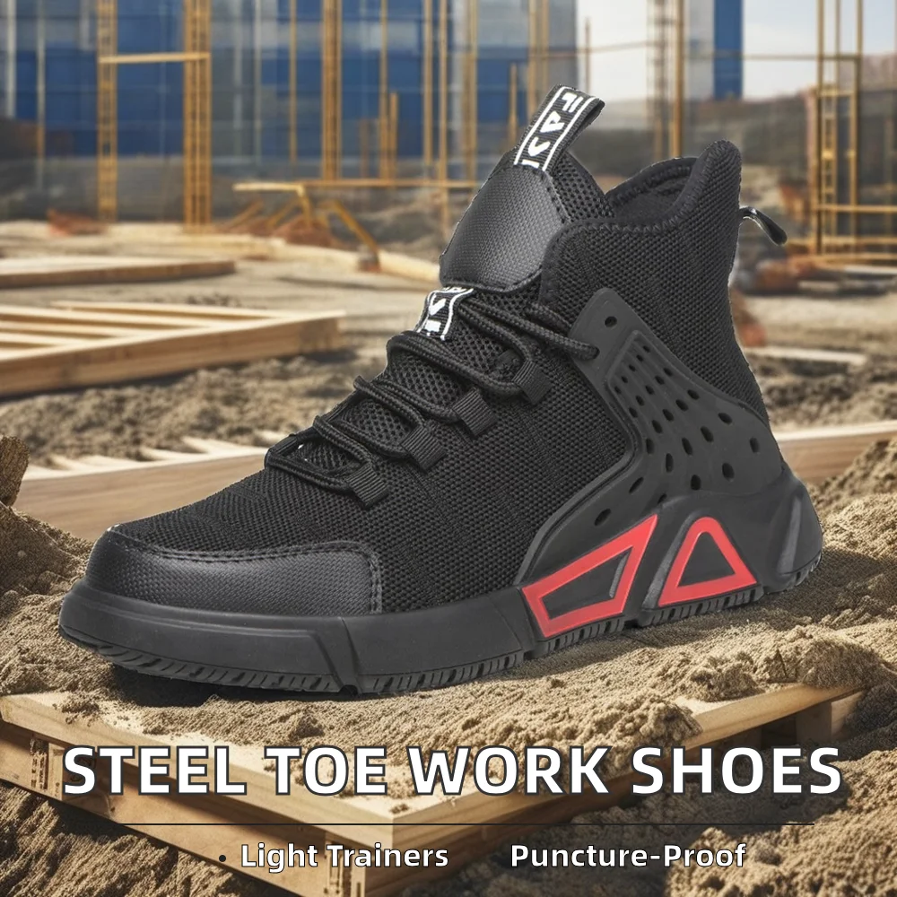 Men's Lightweight Work Sneakers Steel Toe Safety Shoes EVA Insole Waterproof Anti-Puncture Work Boots for Hiking Everyday Use