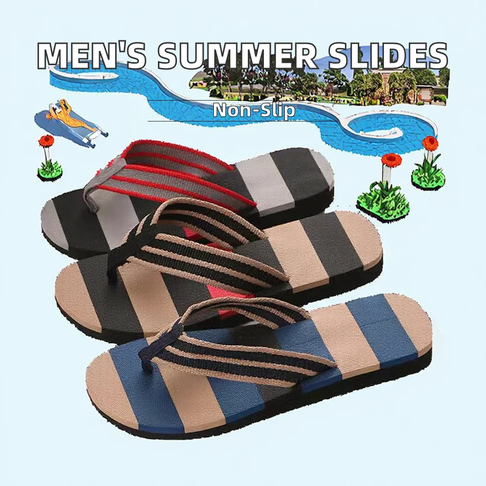Men's Summer Flip-Flops Comfortable Casual Beach Sandals with PVC Insole Anti-Slip Bathroom Shoes Massage Granule for House Use